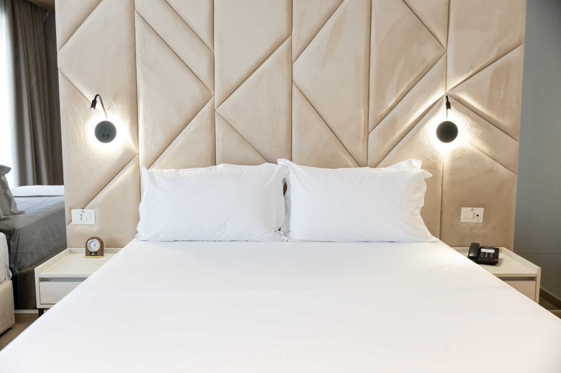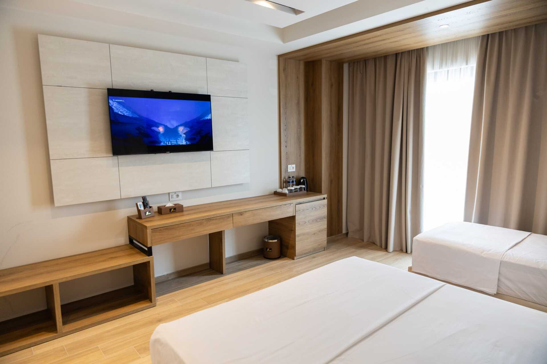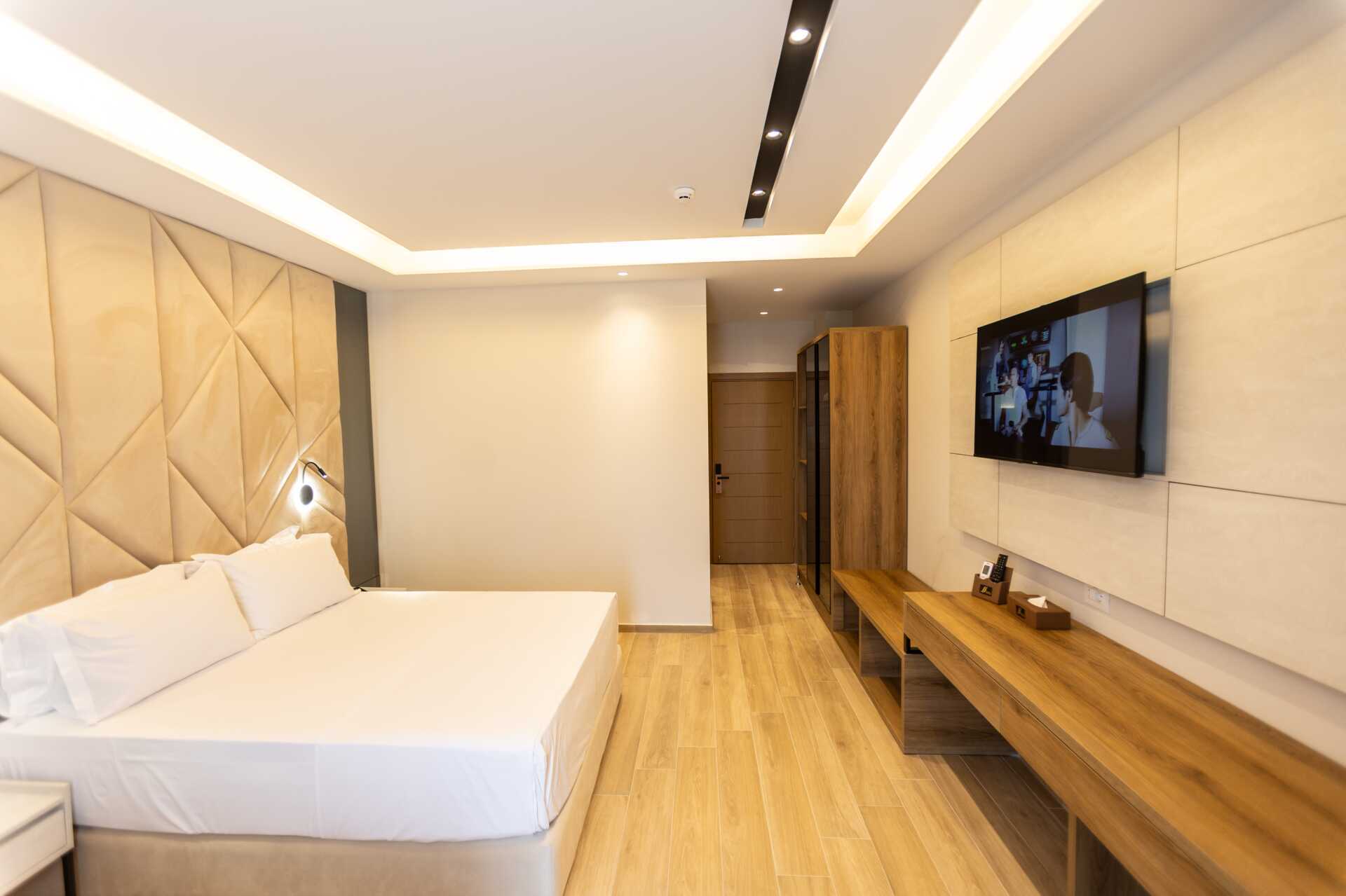 Dubbelrum med balkong eller terrass. En dubbelsäng eller två enkelängar. Möjlighet till extrabäddar i enkelsängar. Wifi, luftkonditionering och deponering ingår. Minibar. Tv med internationella kanaler. Hårtork. Badrum med badkar eller dusch samt wc. Städning 7 ggr/vecka.
