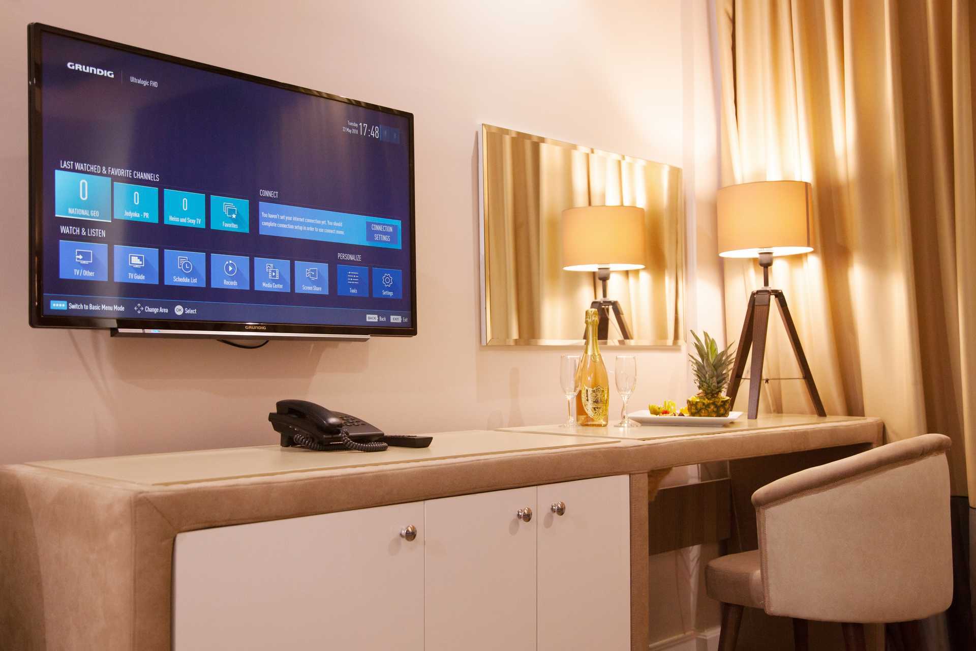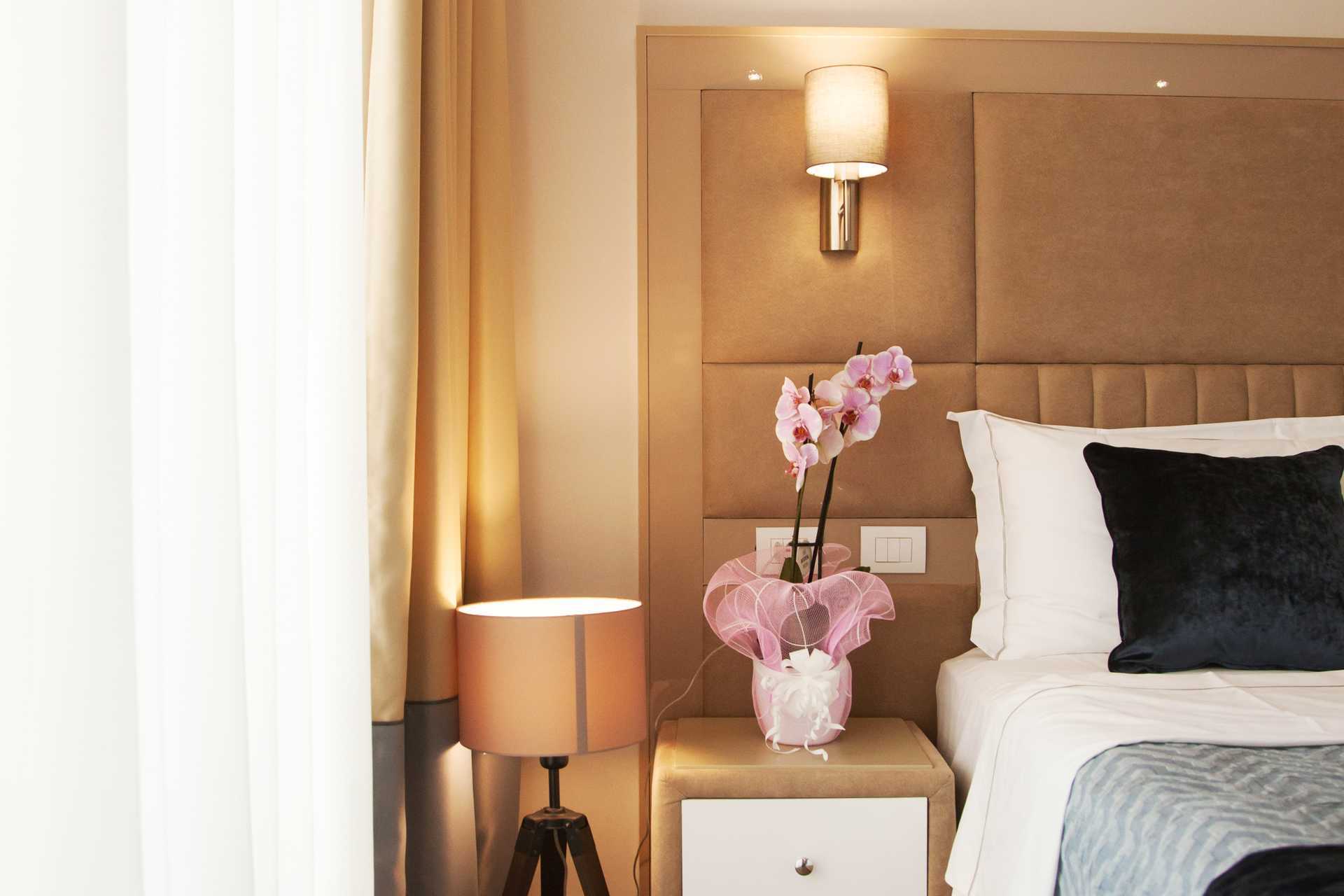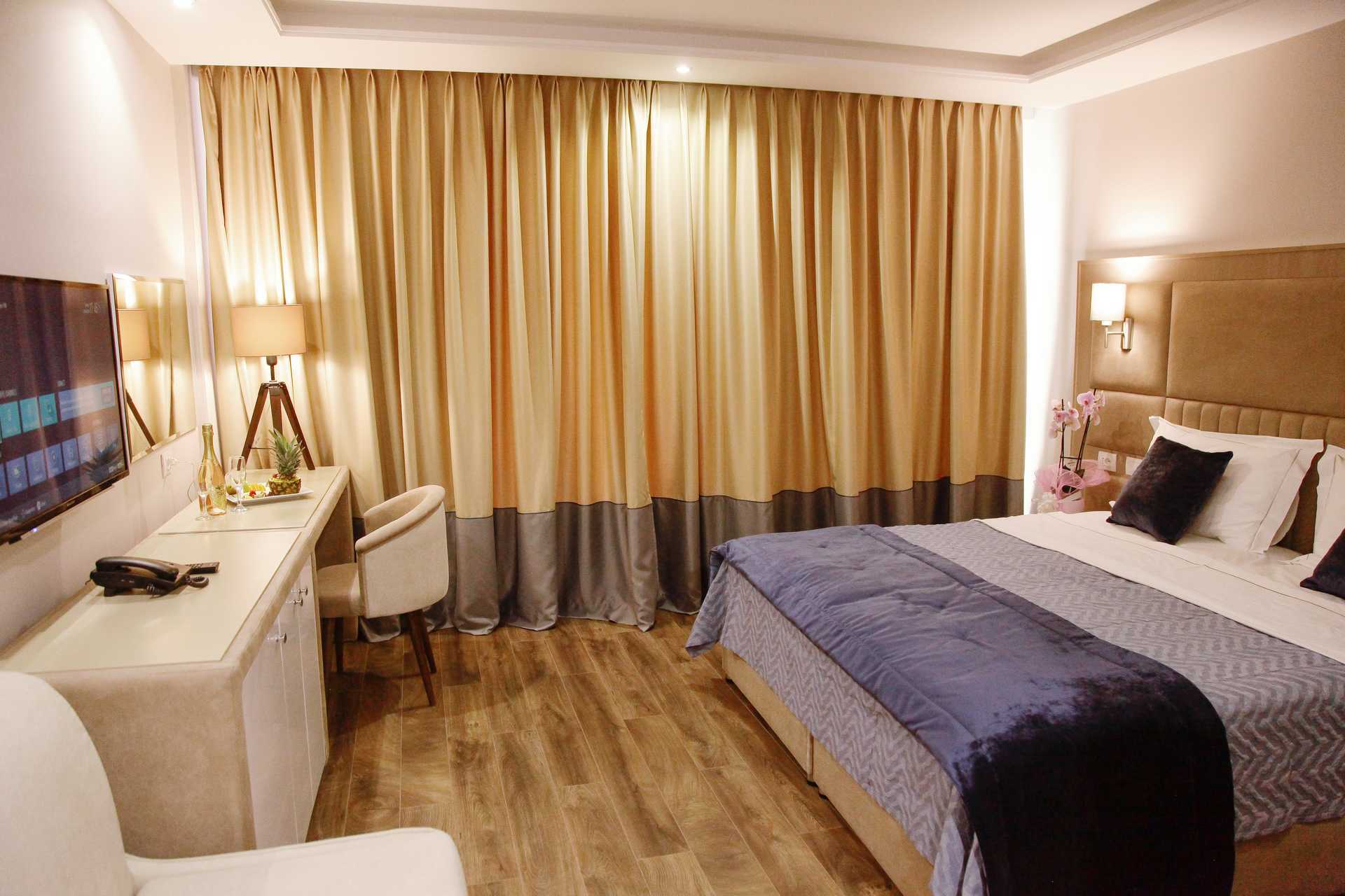 Dubbelrum med balkong och begränsad havsutsikt eller havsutsikt alternativt dubbelrum utan uteplats. En dubbelsäng eller två enkelsängar. Möjlighet till extrabädd i bäddsoffa eller hopfällbar säng. Wifi, luftkonditionering och deponering ingår. Kylskåp. Tv med internationella kanaler. Hårtork. Badrum med dusch och wc. Städning 7 ggr/vecka.