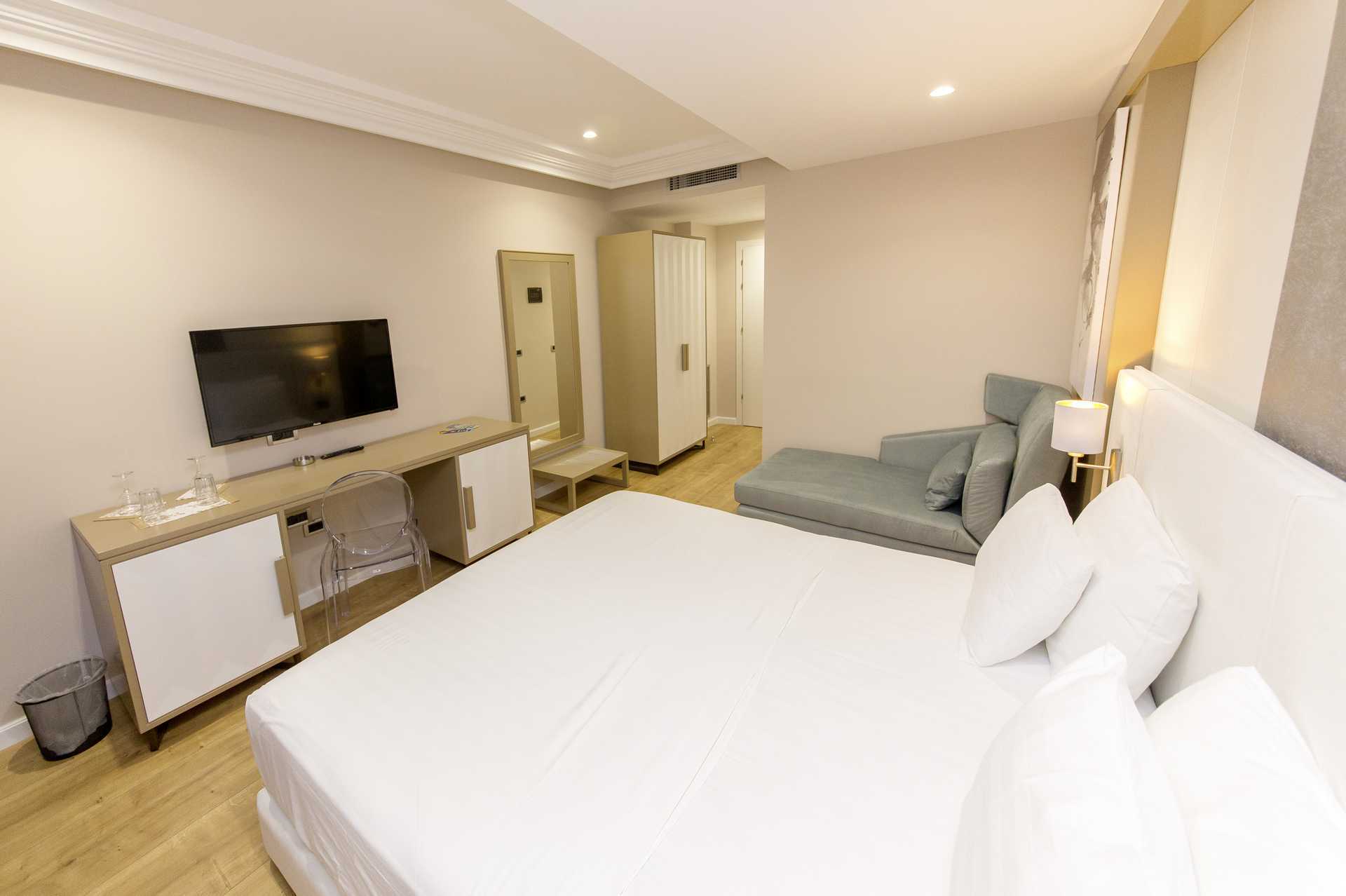 Superiorrum med balkong och havsutsikt eller med begränsad havsutsikt. En dubbelsäng. Möjlighet till extrabäddar i bäddsoffa. Wifi, luftkonditionering och deponering ingår. Kylskåp. Tv med lokala kanaler. Hårtork. Badrum med dusch och wc. Städning 7 ggr/vecka.