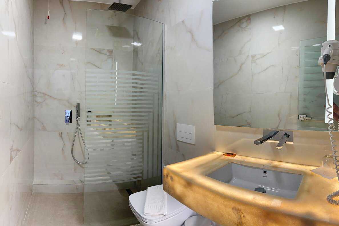 Superiorrum med balkong och där vissa balkonger har havsutsikt eller begränsad havsutsikt. En dubbelsäng eller två enkelsängar. Möjlighet till extrabädd i bäddsoffa. Wifi, deponering och luftkonditionering ingår. Kylskåp. Vattenkokare samt kaffe och te. Tv med internationella kanaler. Hårtork. Glasdörr till badrum med badkar eller dusch samt wc. Städning 7 ggr/vecka.