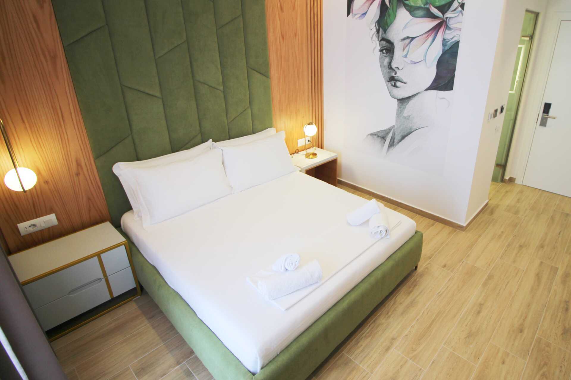 Deluxerum med balkong, vissa med havsutsikt. En dubbelsäng. Wifi, luftkonditionering och deponering ingår. Vattenkokare. Tv med internationella kanaler. Hårtork. Badrum med dusch och wc. Städning 7 ggr/vecka.