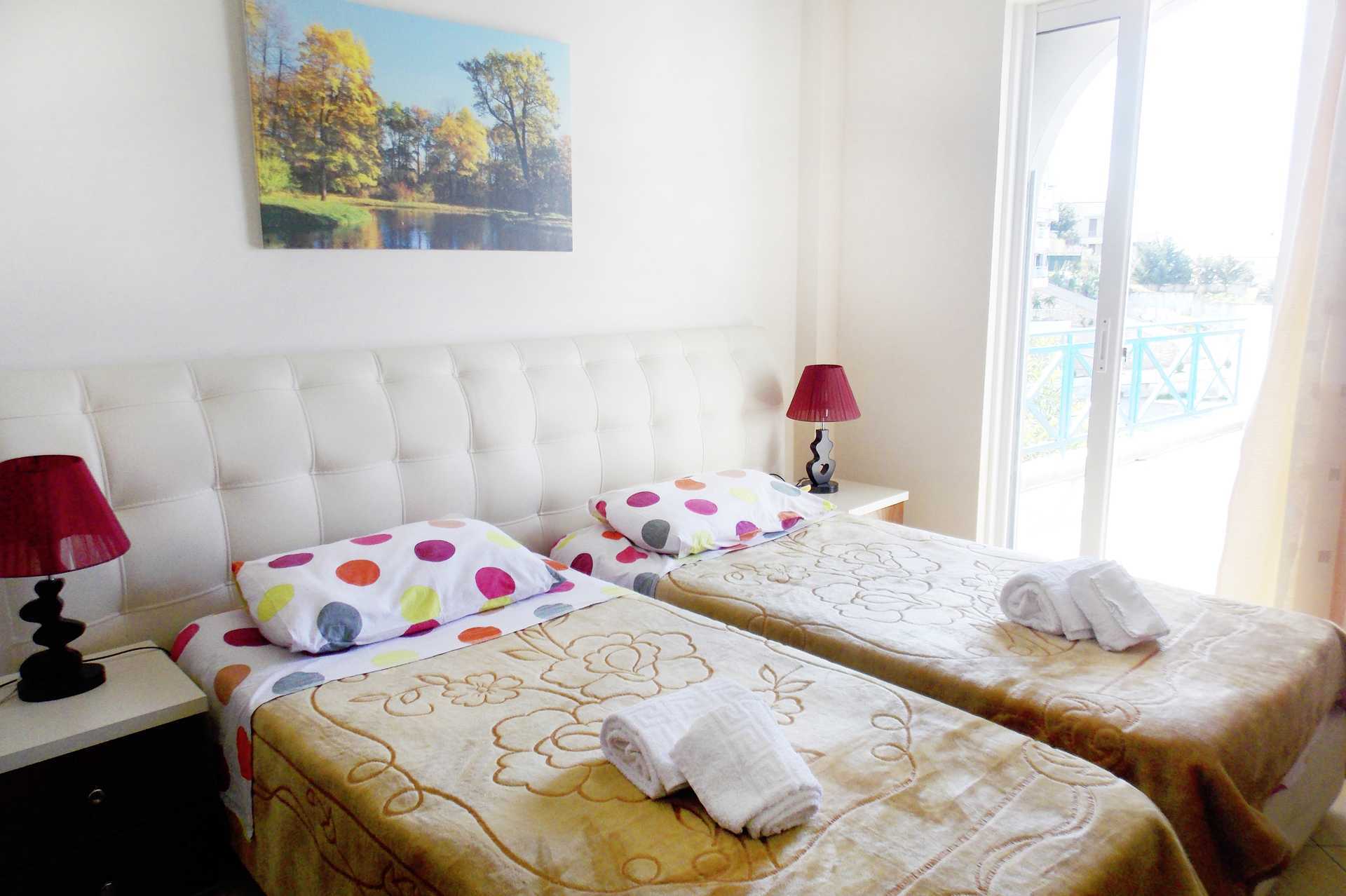 Dubbelrum med balkong av varierande storlek och med havutsikt. En dubbelsäng eller två enkelsängar. Möjlighet till extrabäddar i två enkelsängar. Wifi och luftkonditionering ingår. Uppkopplingen på wifin varierar mellan rummen. Deponering mot avgift. Kylskåp. Tv med internationella kanaler. Hårtork. Badrum med dusch och wc. Städning 7 ggr/vecka.
