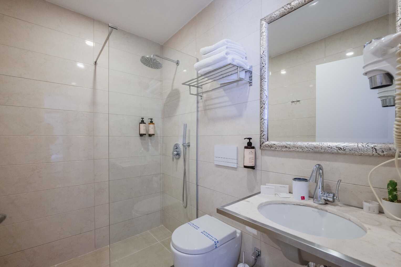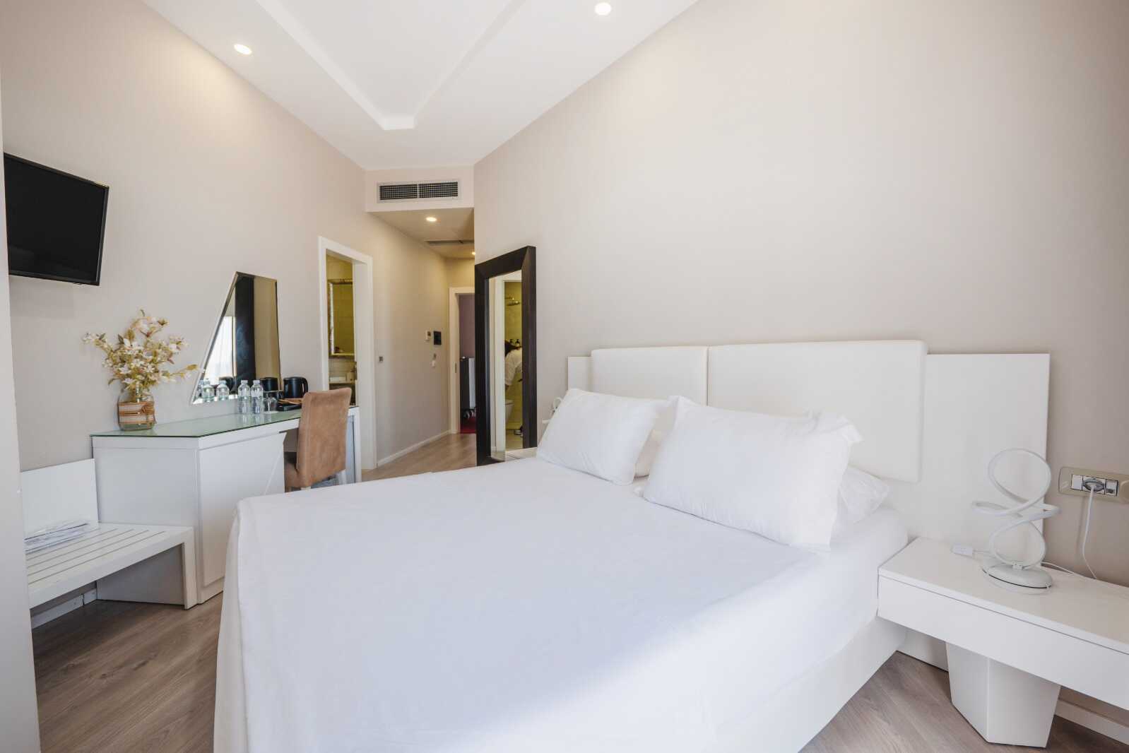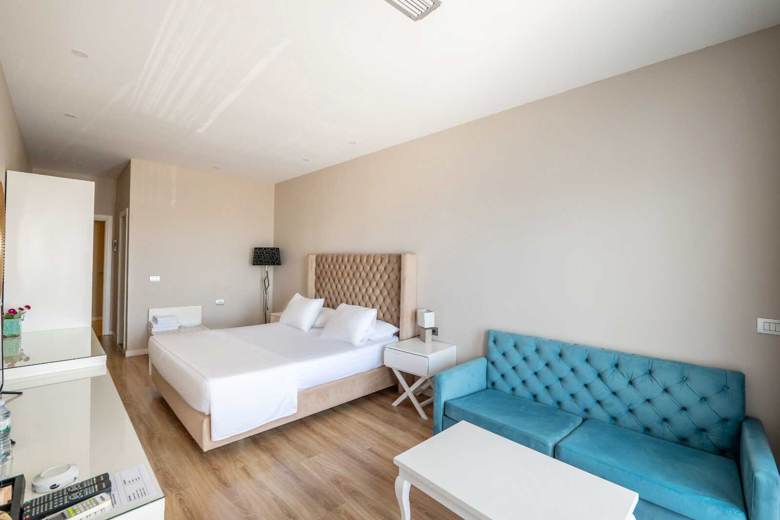Dubbelrum med balkong, vissa med havsutsikt eller begränsad havsutsikt. En dubbelsäng eller två enkelsängar. Möjlighet till extrabäddar i bäddbar soffa. Wifi, luftkonditionering och deponering ingår. Kylskåp. Vattenkokare. Tv med internationella kanaler. Hårtork. Badrum med dusch och wc. Städning 7 ggr/vecka.