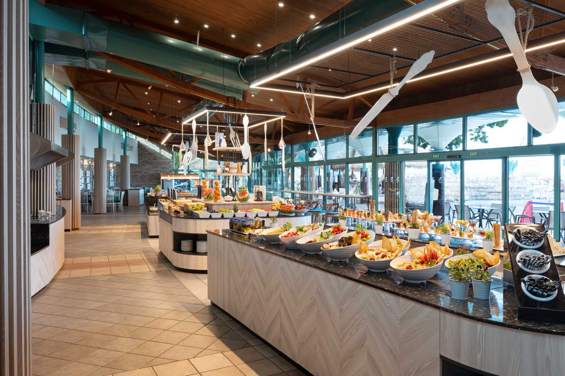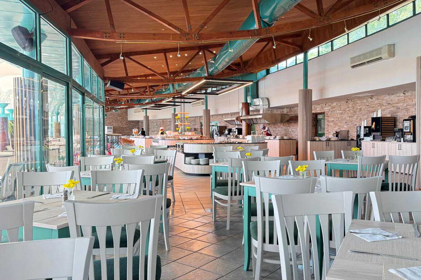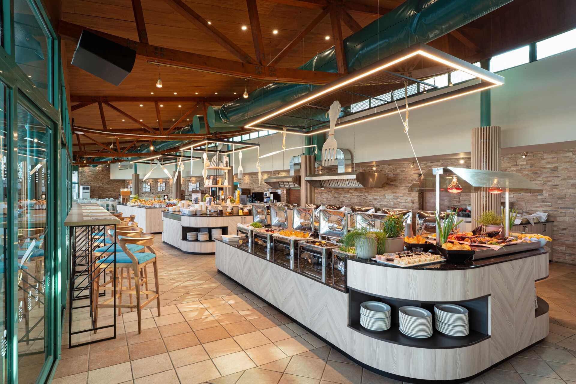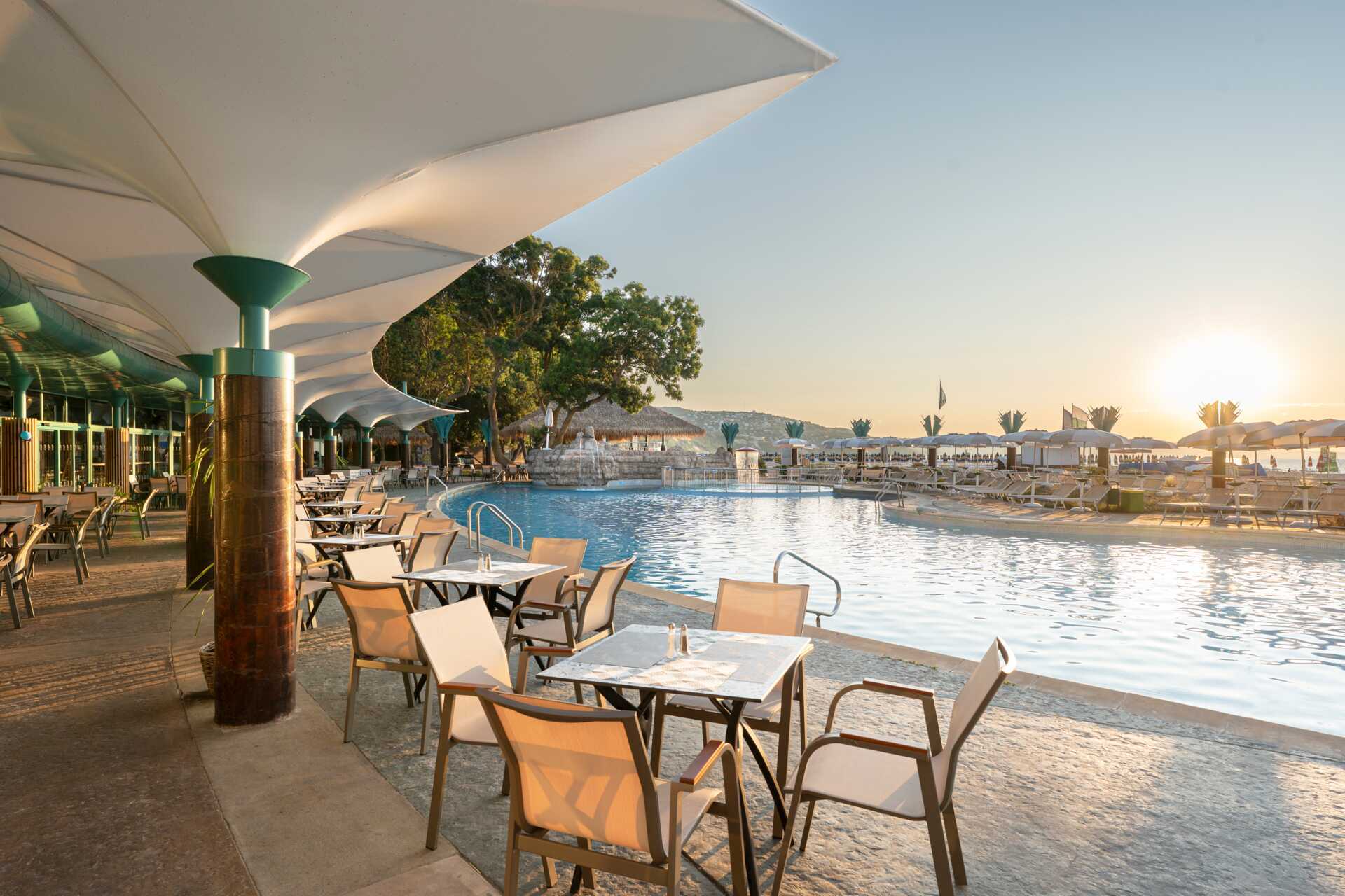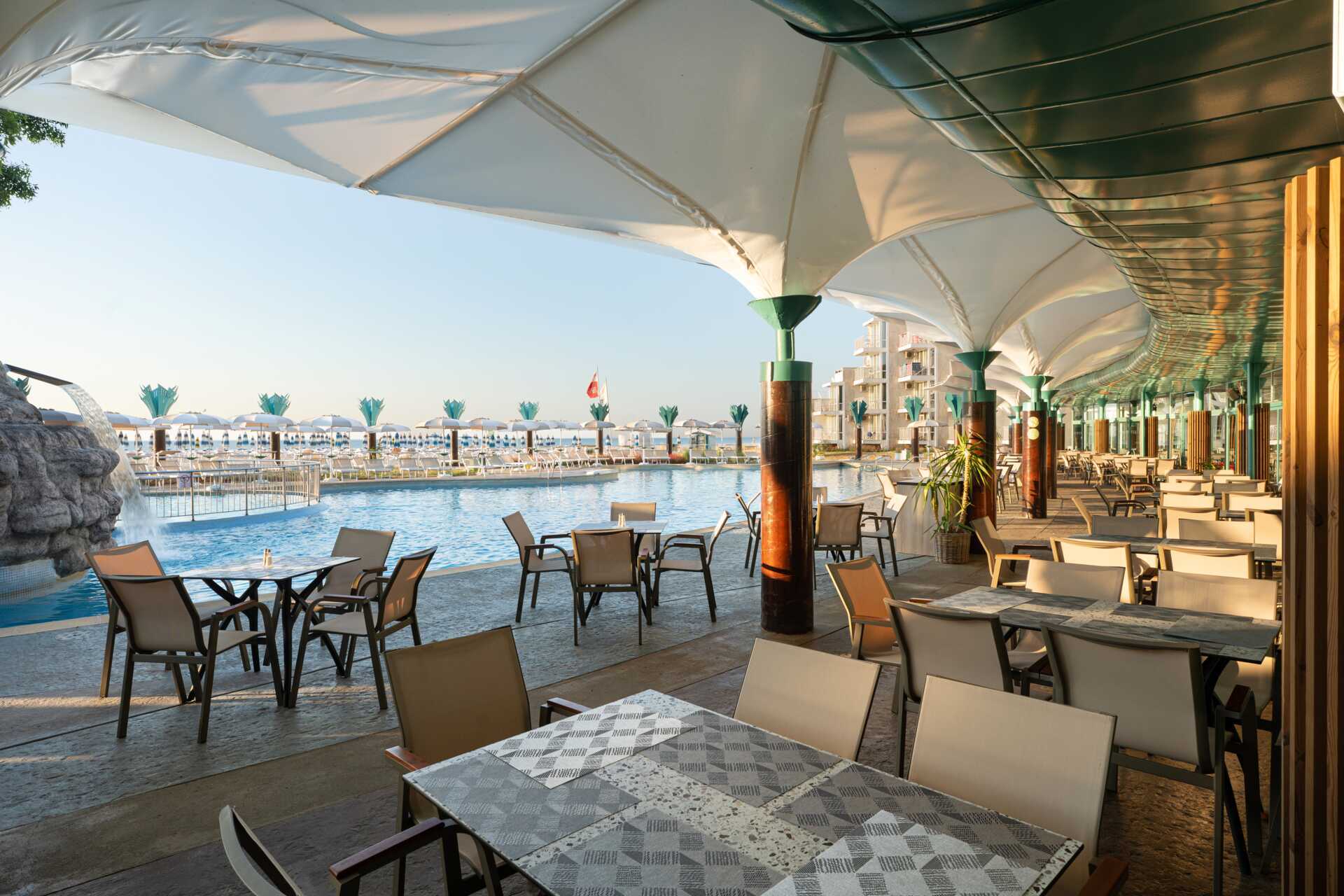 Hotellets restaurang erbjuder varierade bufféer med både internationella och lokala rätter. Under dagen serveras även snacks och dryck i poolbaren samt lobbybaren. Albenas "Dine Around" koncept innebär att man som gäst har möjlighet att byta ut en lunch i en à la carte-restaurang per vecka och en middag i en à la carte-restaurang eller bufférestaurang per vecka på ett annat hotell som är del av konceptet. Vilka restauranger det gäller och under vilka perioder under säsongen framgår på plats på hotellet.