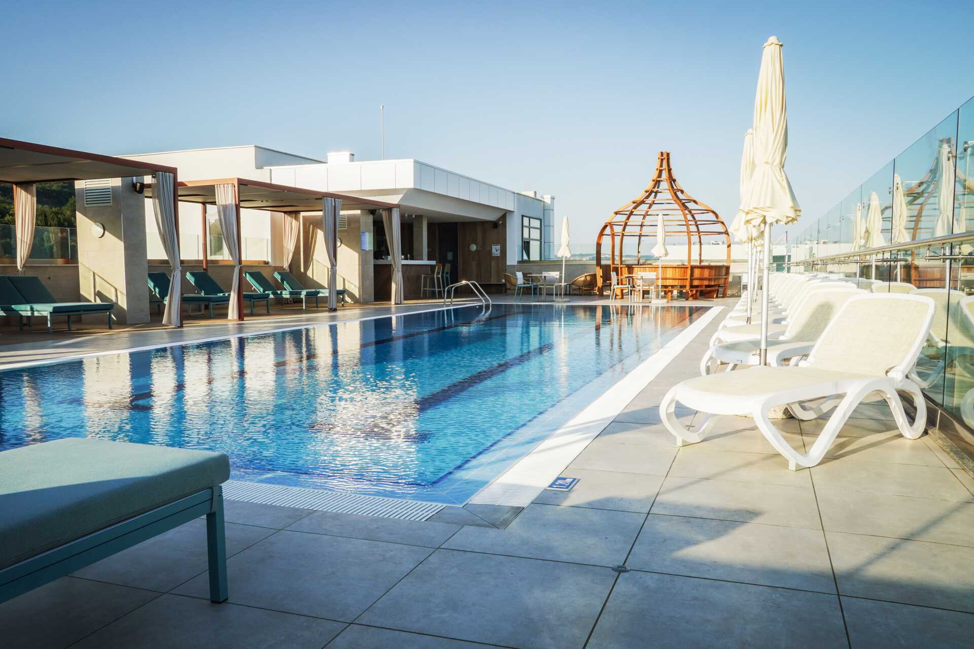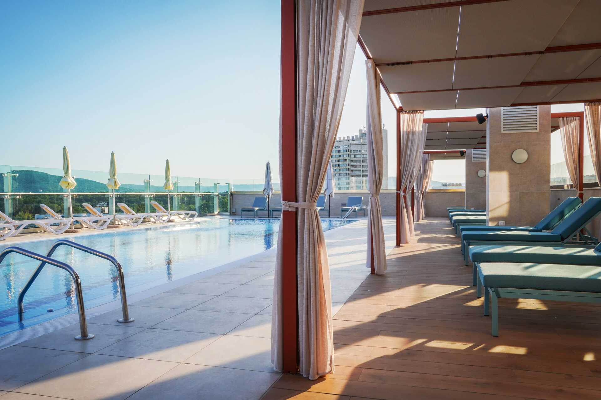 För de som väljer Executive-kategori fås tillgång till exklusiv takterass med en pool och bar med havsutsikt.