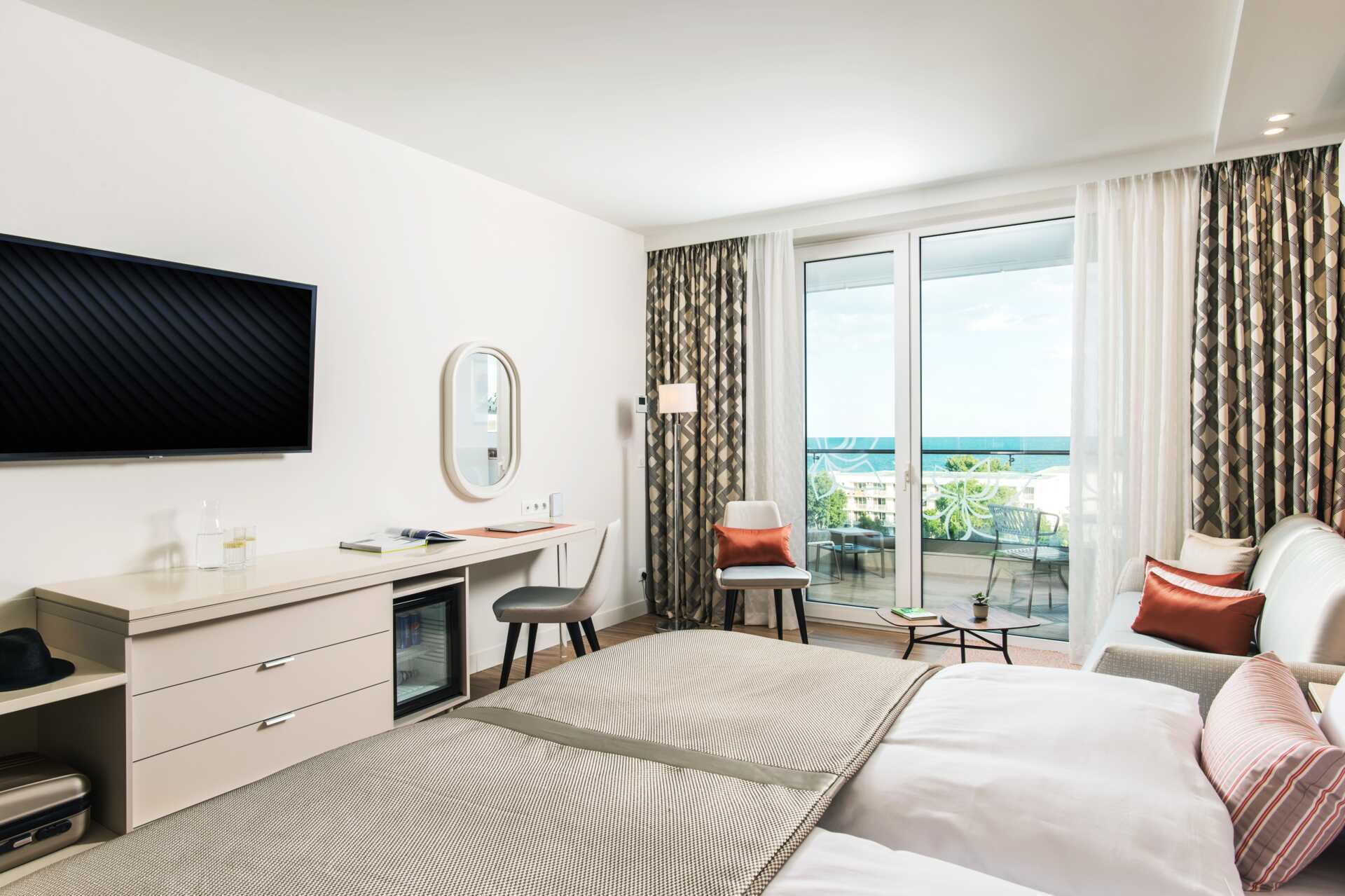 Dubbelrum med balkong. Två enkelsängar. Möjlighet till extrabäddar i bädsoffa. Wifi, luftkonditionering och deponering ingår. Minibar ingår och fylls på dagligen. Vattenkokare samt kaffe och te. Tv med internationella kanaler. Badrock finns mot förfrågan. Hårtork. Badrum med badkar eller dusch samt wc. Städning 7 ggr/vecka.