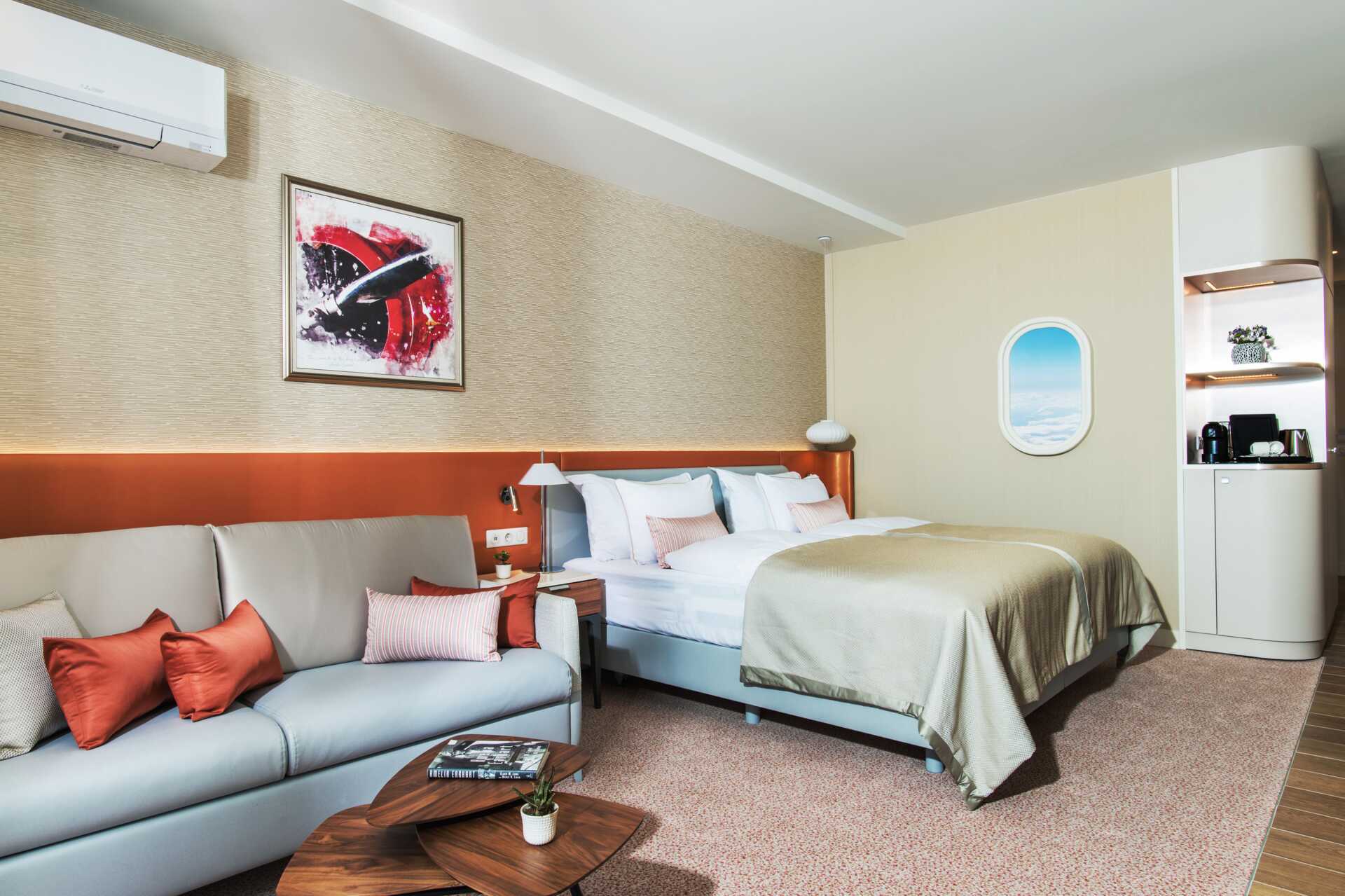 Deluxerum med balkong. Två enkelsängar. Möjlighet till extrabäddar i bädsoffa. Wifi, luftkonditionering och deponering ingår. Minibar ingår och fylls på dagligen. Vattenkokare samt kaffe och te. Tv med internationella kanaler. Badrock finns mot förfrågan. Hårtork. Badrum med badkar eller dusch samt wc. Städning 7 ggr/vecka.