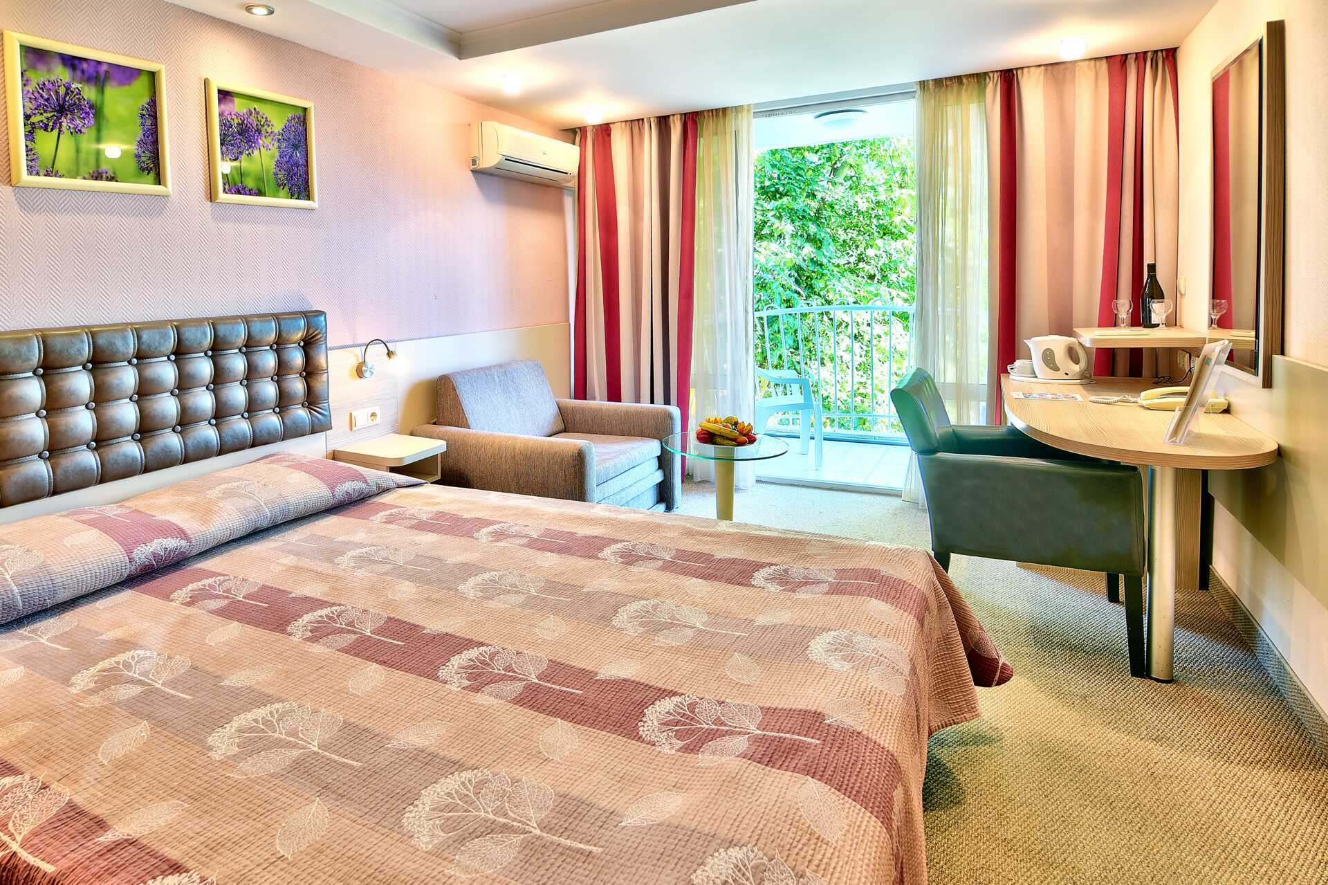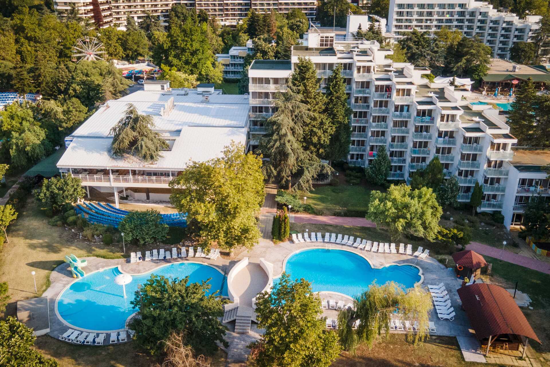 Hotellet ligger mycket centralt i Albena, vid strandpromenaden bara ett stenkast från den långa gyllene sandstranden och nära både restauranger, butiker och nöjesliv.