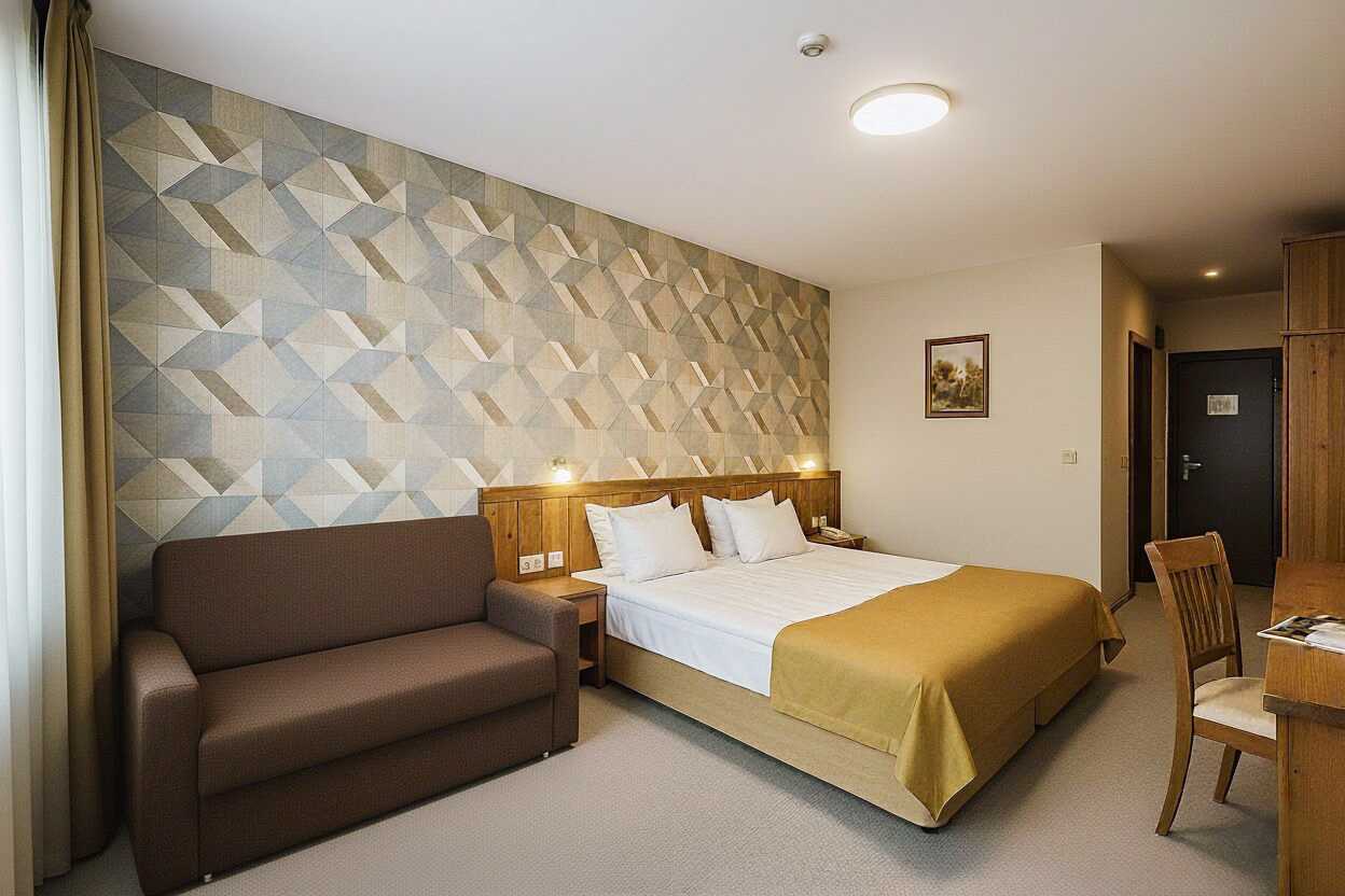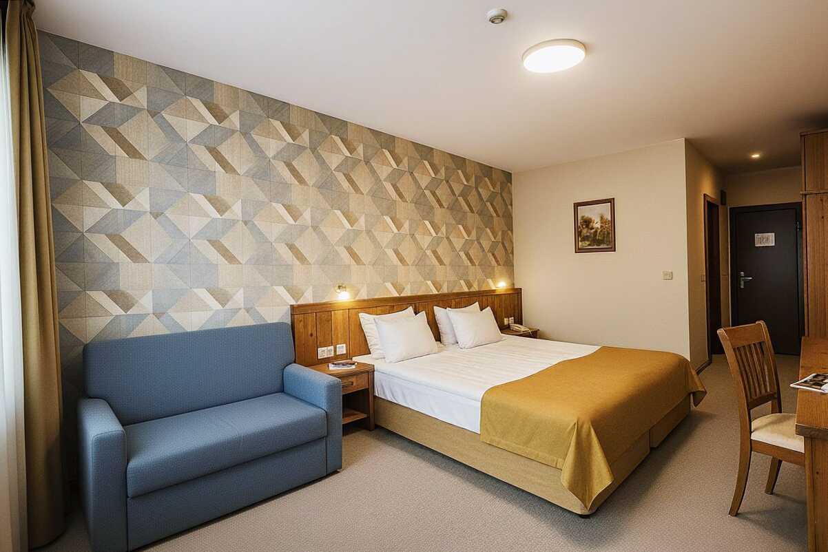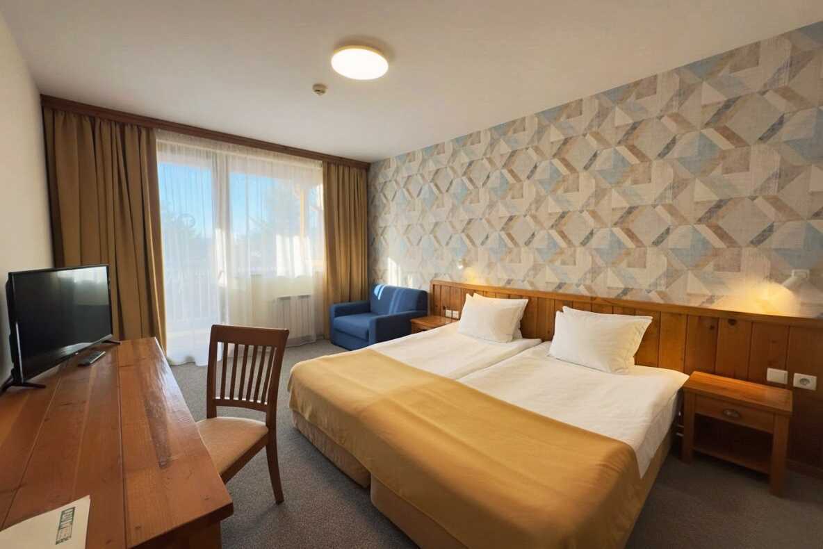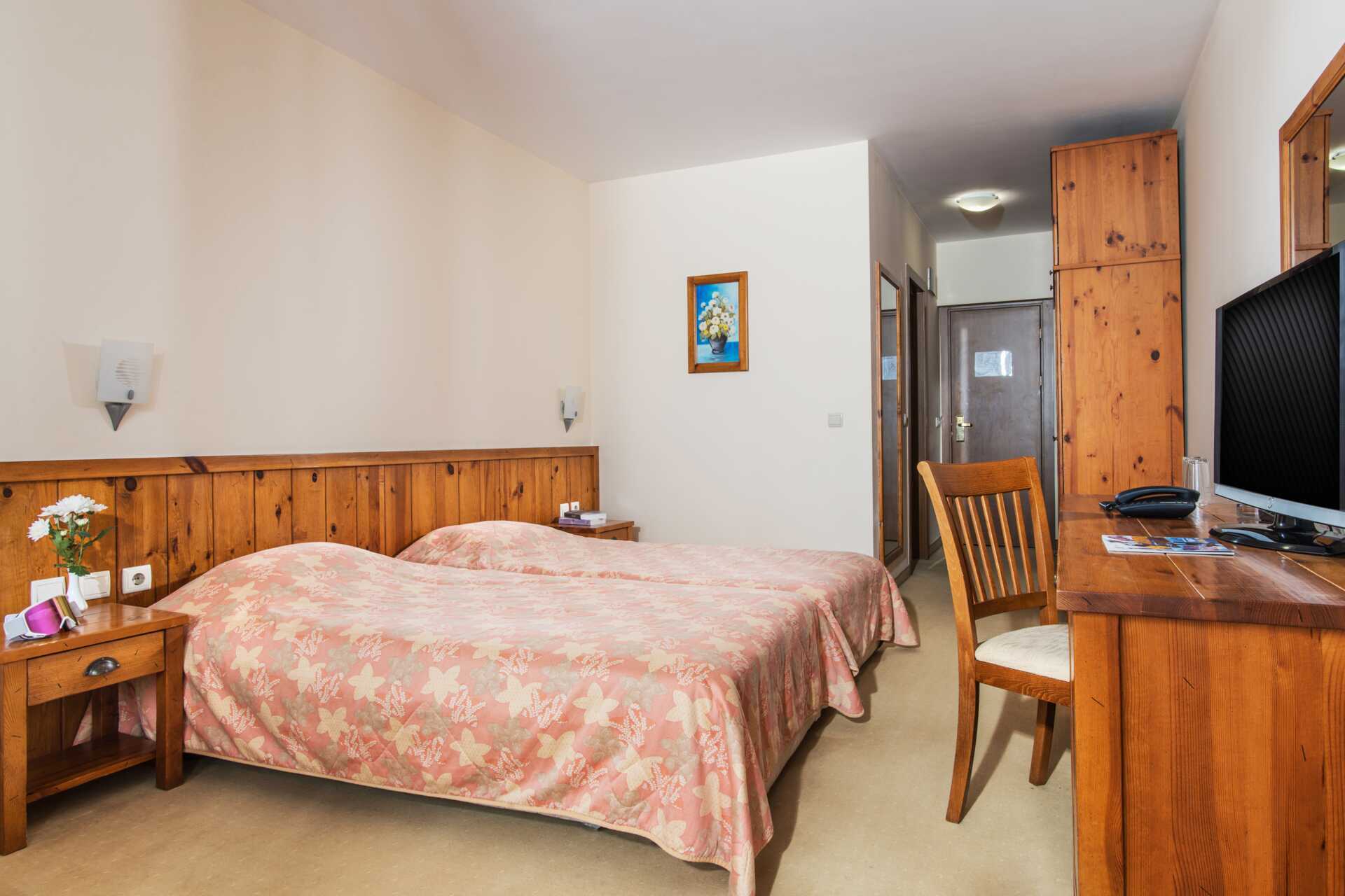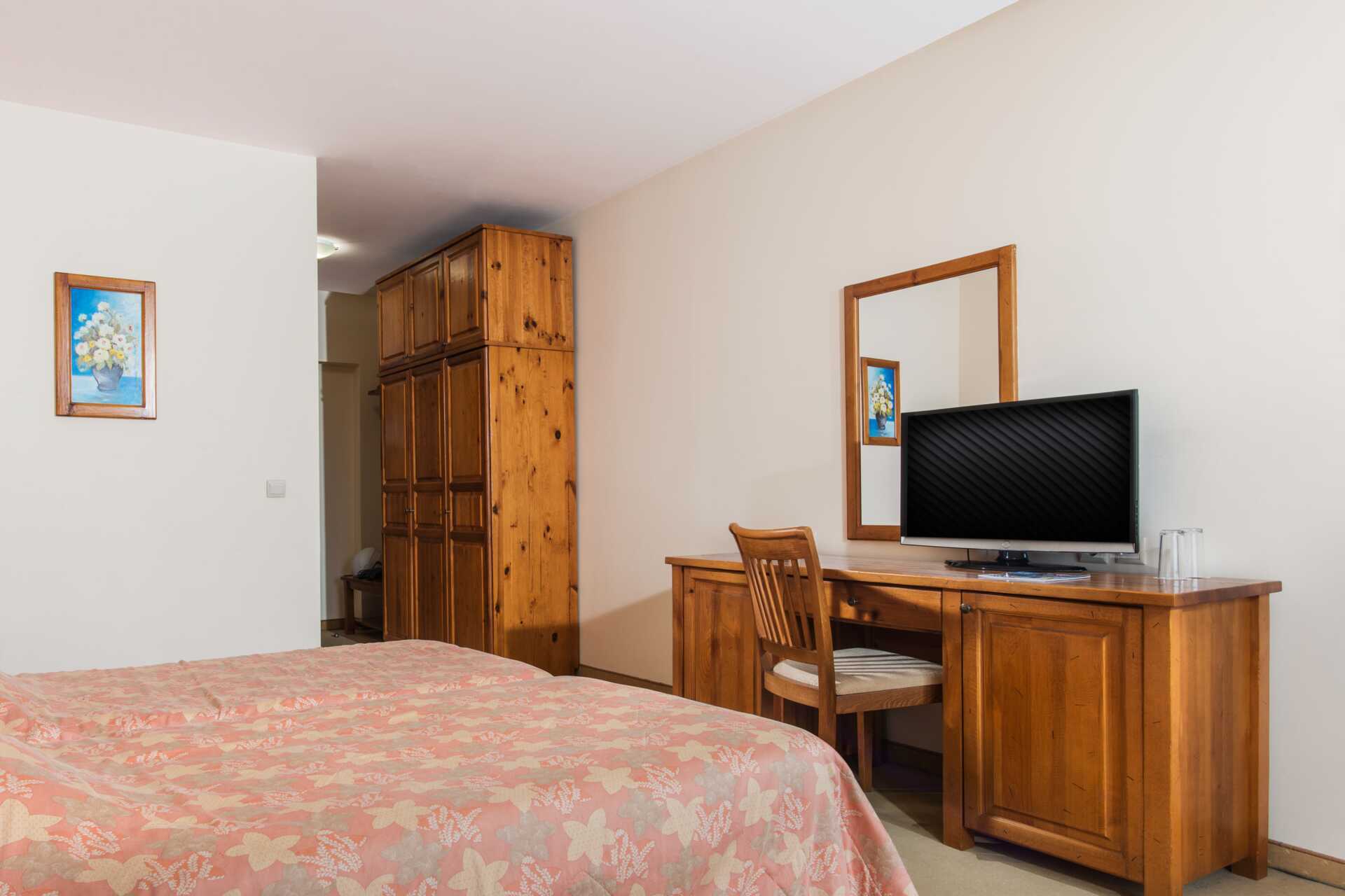 Dubbelrum med balkong med utsikt över staden eller bergen. Två enkelsängar. Möjlighet till extrabädd i bäddbar fåtölj. Wifi, luftkonditionering som värme samt deponering ingår. Kylskåp. Tv med internationella kanaler. Heltäckningsmatta. Strykjärn och strykbräda. Hårtork. Badrum med dusch och wc. Städning 7 ggr/vecka.
