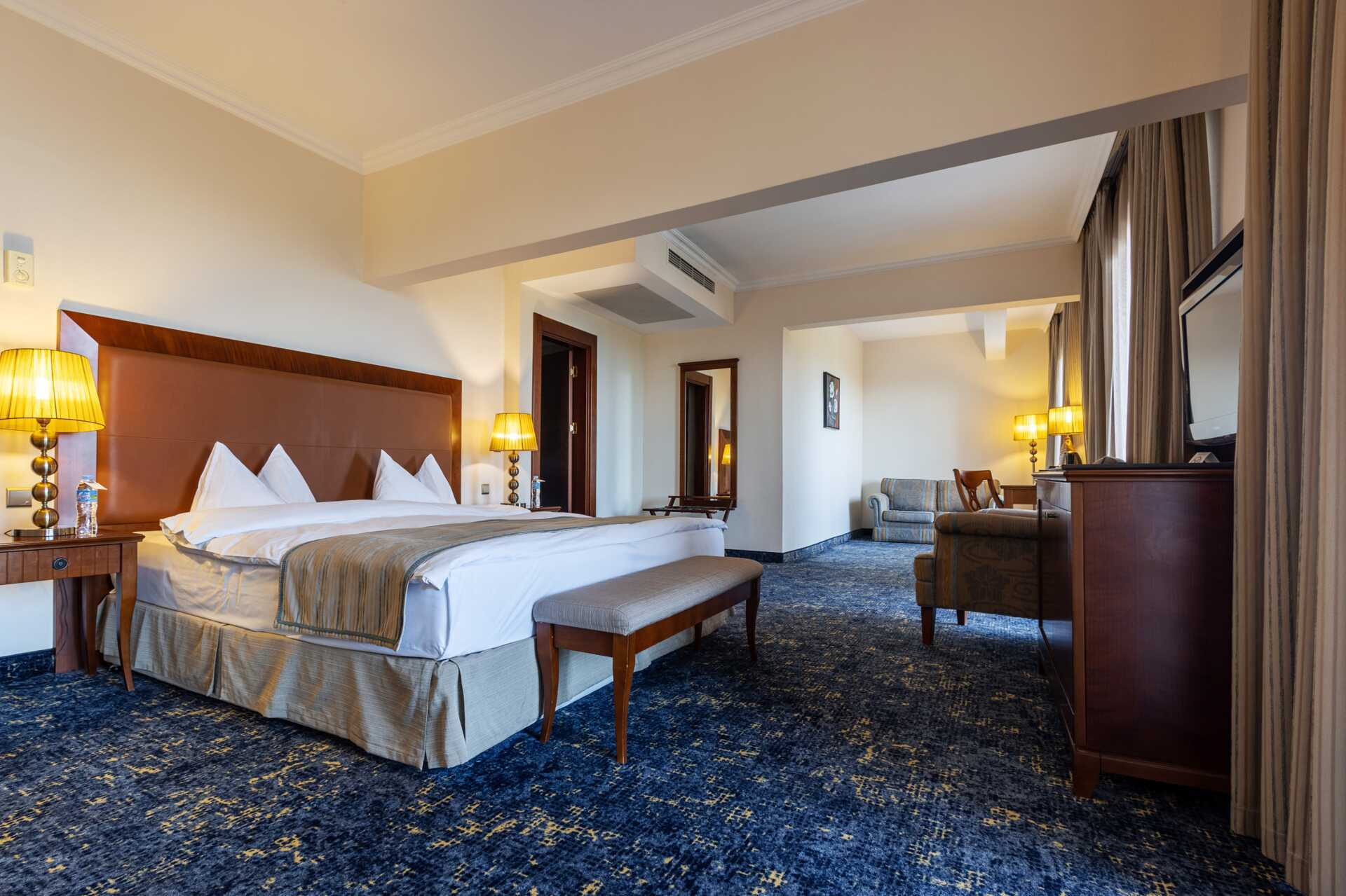 Superiorrum, Seafront med balkong och havsutsikt. En dubbelsäng. Möjlighet till extrabädd i bäddsoffa. Wifi, luftkonditionering och deponering ingår. Minibar mot avgift. Vattenkokare samt kaffe och te. Tv med internationella kanaler. Strykjärn och strykbräda. Heltäckningsmatta. Hårtork. Badrock och tofflor. Badrum med badkar, dusch samt wc. Städning 7 ggr/vecka.