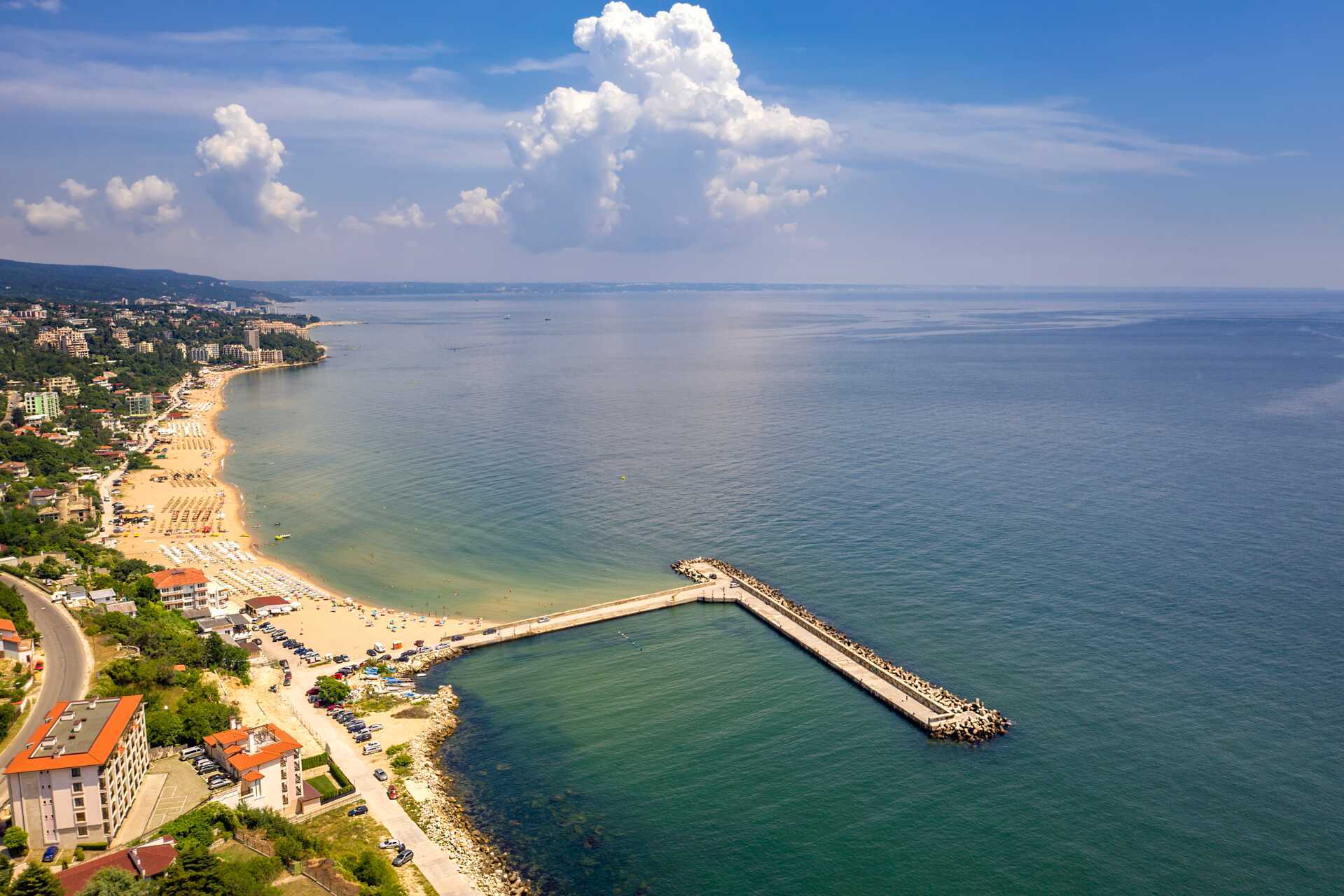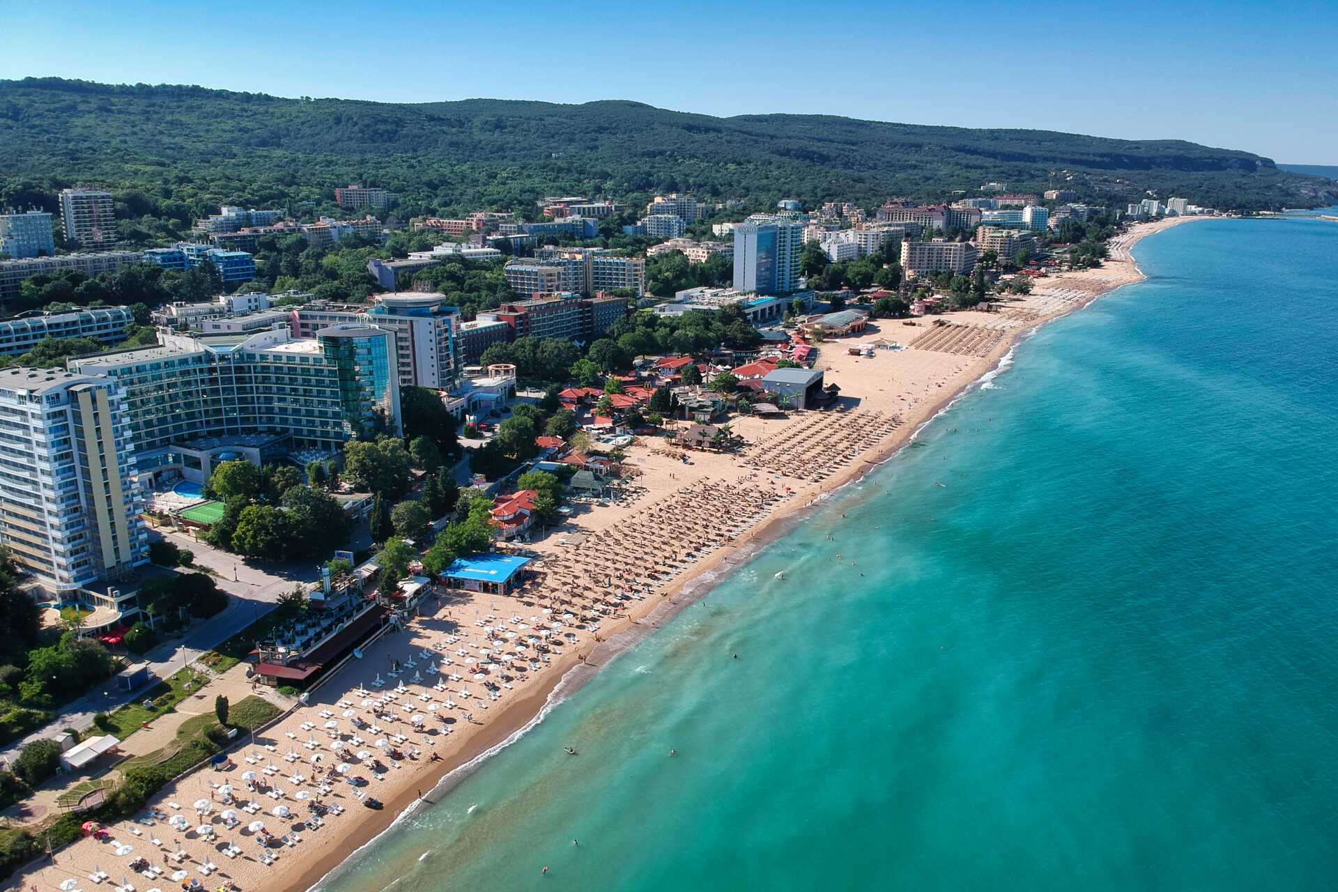 Resmålets namn säger allt, här breder gyllene sand ut sig längs nästan fyra kilometer av Bulgariens Svarta havskust. Stranden är mjuk och inbjudande, perfekt för lata dagar i solen och sköna dopp i det klara vattnet. Det är relativt långgrunt och barnvänligt, vilket gör det lika bra för familjer som för dig som bara vill koppla av. Längs stranden finns gott om solstolar, strandbarer och aktiviteter som beachvolley och vattensporter för den som vill ha lite mer fart.