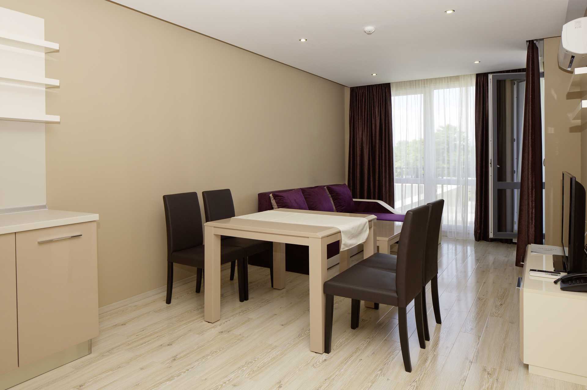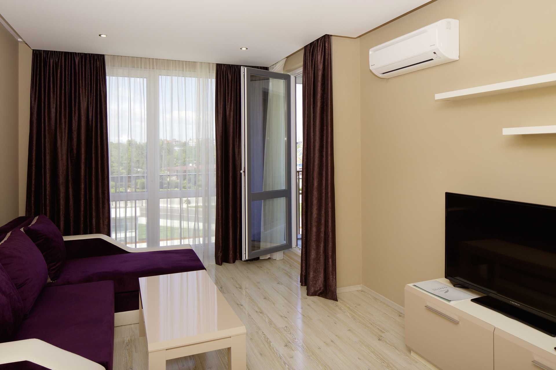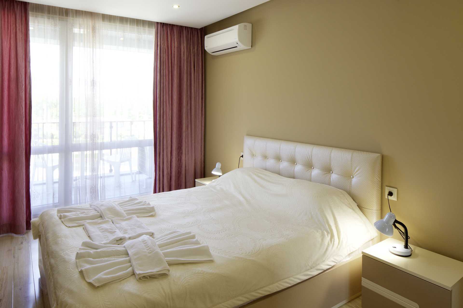 Tvårumslägenhet med balkong. Ett sovrum och kombinerat vardagsrum med minikök. En dubbelsäng. Möjlighet till extrabäddar i bäddsoffa. Minikök med kokplattor, kylskåp, vattenkokare och enkel köksutrustning. Wifi, luftkonditionering och deponering ingår. Tv med internationella kanaler. Hårtork. Badrum med dusch och wc. Städning 7 ggr/vecka.