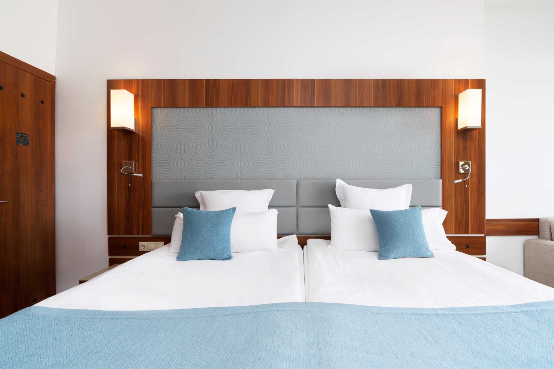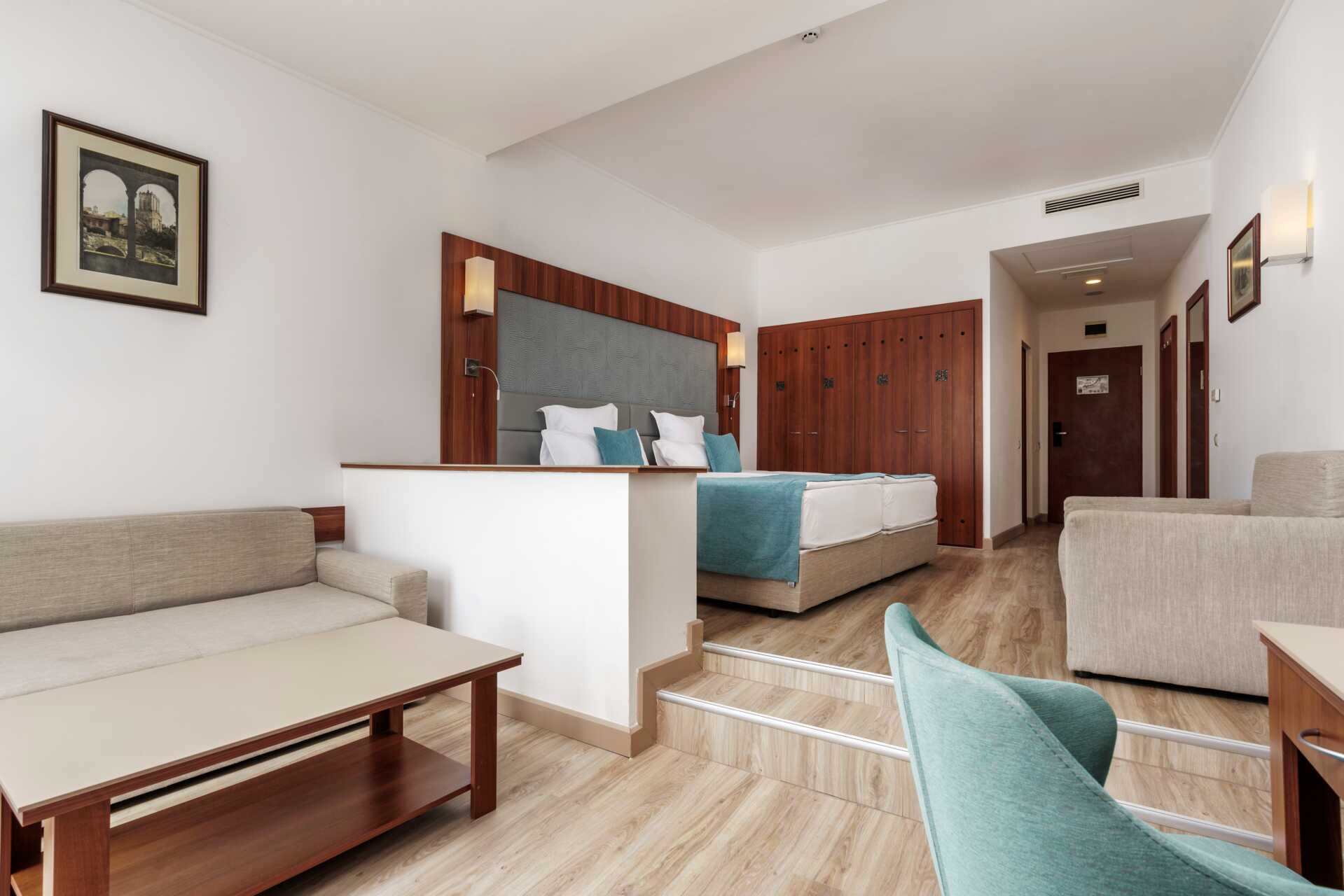 Superiorrum med balkong och havsutsikt. En dubbelsäng eller två enkelsängar. Möjlighet till extrabädd i bäddsoffa. Wifi, luftkonditionering och deponering ingår. Kylskåp. Vattenkokare och te. Tv med internationella kanaler. Hårtork. Badrum med dusch samt wc. Städning 7 ggr/vecka.
