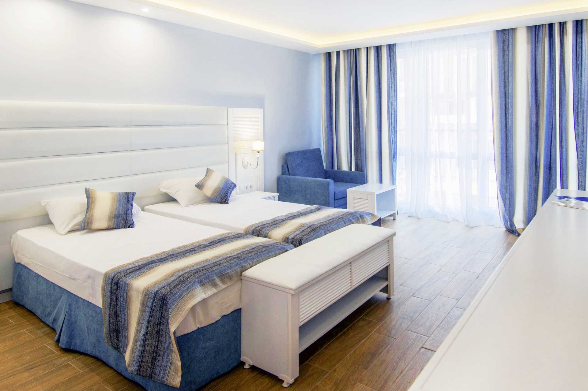 Superiorrum med balkong, vissa med havsutsikt. Två enkelsängar. Möjlighet till extrabädd i bäddsoffa, bäddbar fåtölj eller i ordinarie bädd. Wifi och luftkonditionering ingår. Deponering mot avgift. Kylskåp. Tv med internationella kanaler. Hårtork. Badrum med dusch och wc. Städning 7 ggr/vecka.
