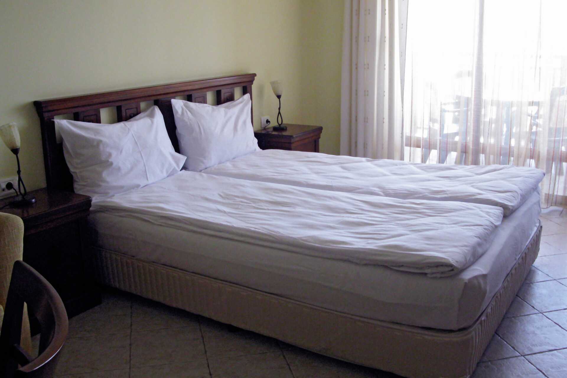 Tvårumslägenhet med balkong eller terrass. Varje lägenhet har sitt unika utseende, men alla har likadana bekvämligheter. Sovrum och kombinerat vardagsrum med minikök. En dubbelsäng. Möjlighet till extrabädd i bäddsoffa. Minikök med kokplattor, kylskåp, mikrovågsugn, brödrost, vattenkokare samt enkel köksutrustning. Wifi och luftkonditionering ingår. Tv med internationella kanaler. Vissa lägenheter har heltäckningsmatta. Strykjärn och strykbräda. Hårtork. Badrum med dusch och wc. Städning 7 ggr/vecka.