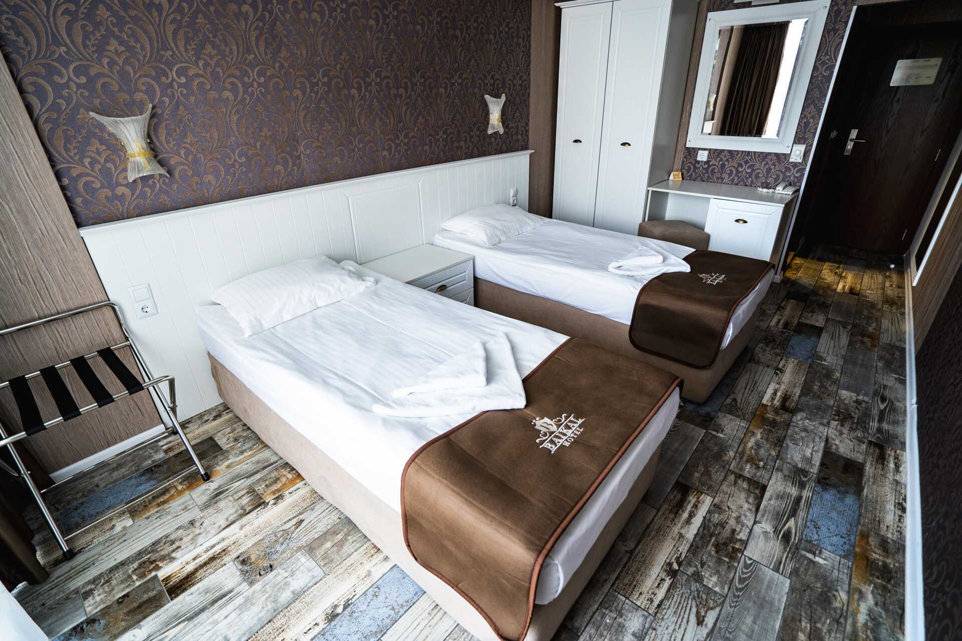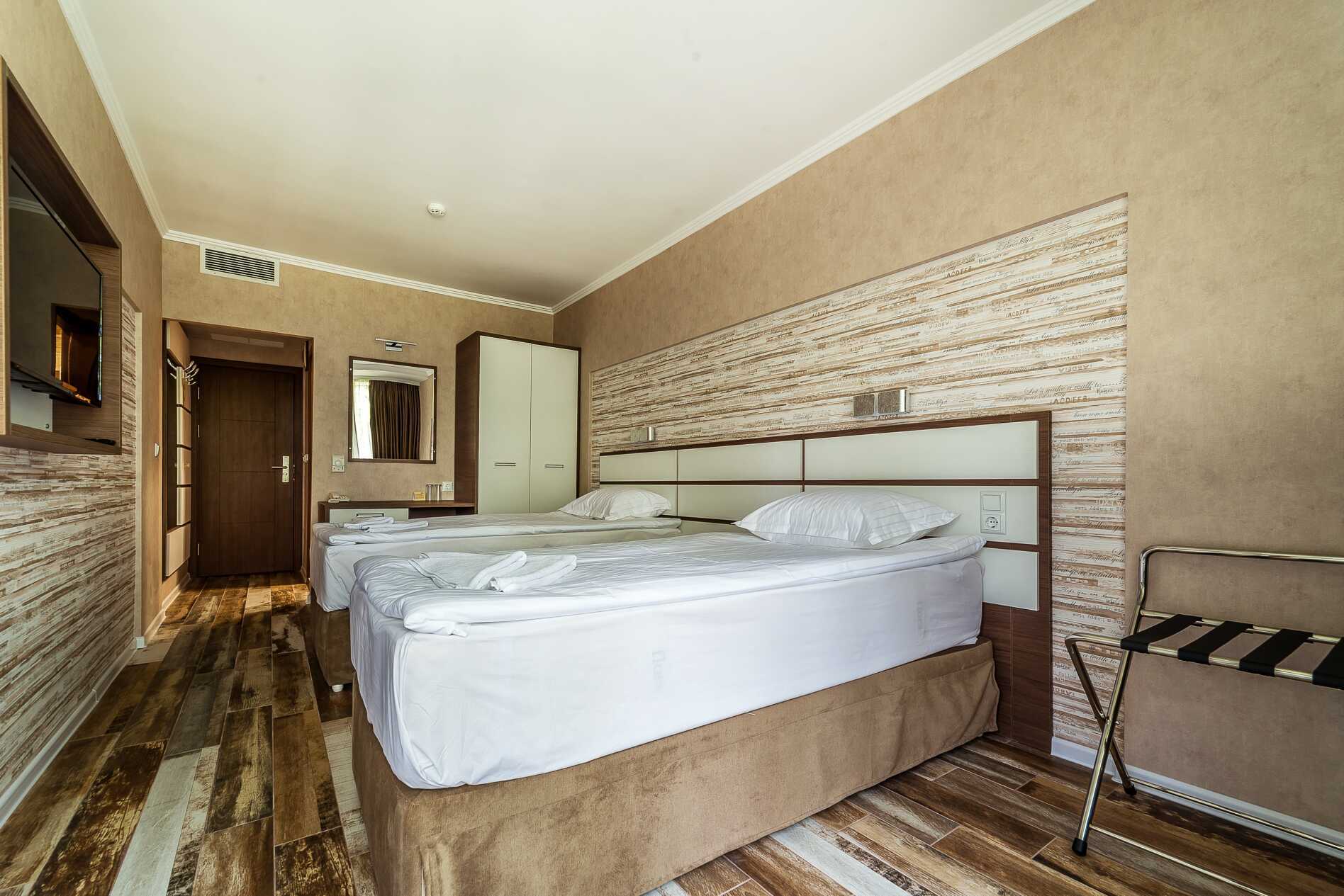 Superiorrum med balkong. Två enkelsängar. Möjlighet till extrabädd i enkelsäng, bäddbar fåtölj och/eller bäddsoffa. Wifi och luftkonditionering ingår. Kylskåp. Tv med internationella kanaler. Hårtork. Badrum med dusch och wc. Städning 7 ggr/vecka.