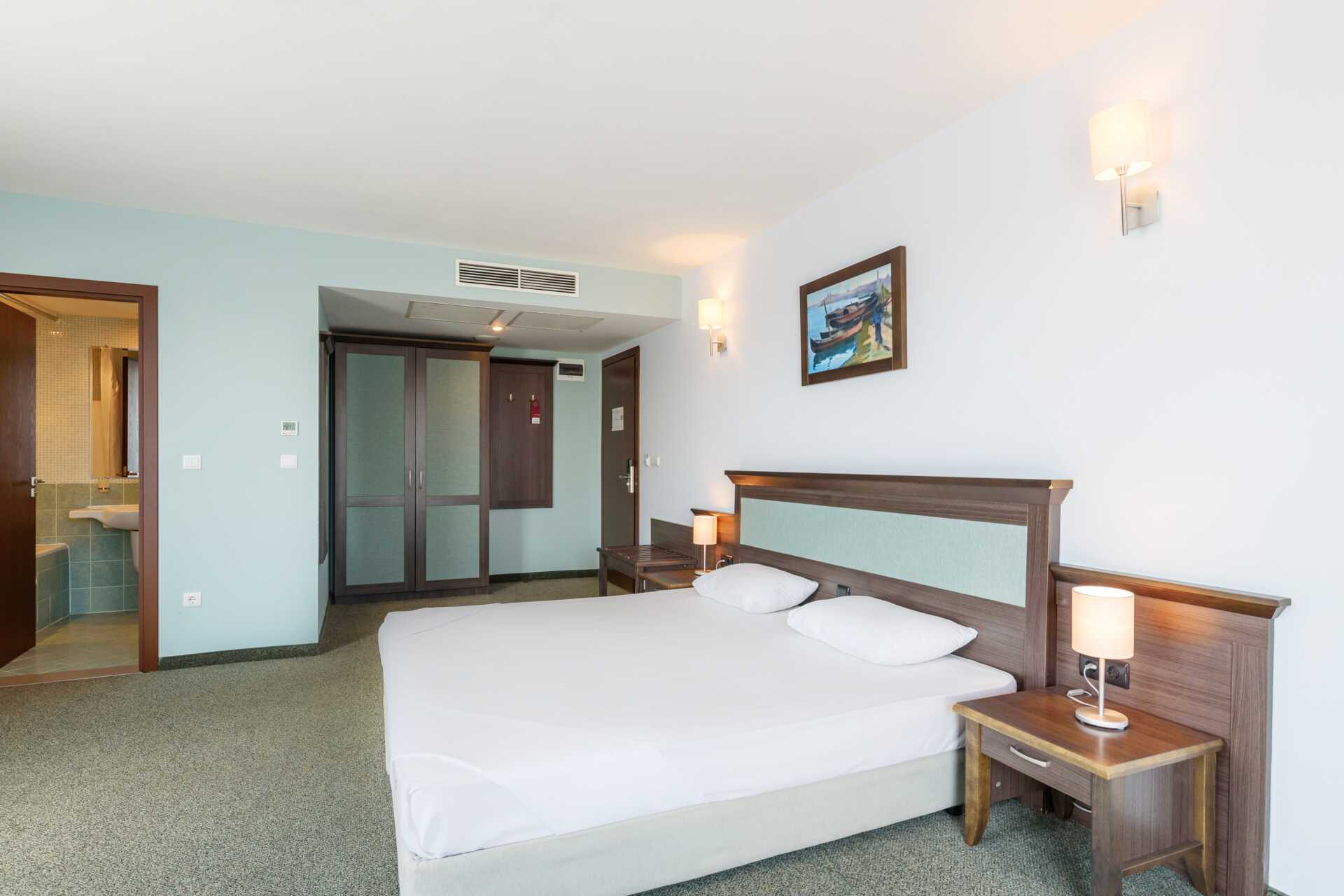 Dubbelrum med balkong eller terrass. En dubbelsäng eller två enkelsängar. Möjlighet till extrabädd i bäddsoffa eller i bäddbar fåtölj. Wifi och luftkonditionering ingår. Heltäckningsmatta. Kylskåp. Tv med internationella kanaler. Hårtork. Badrum med badkar och wc. Städning 7 ggr/vecka.