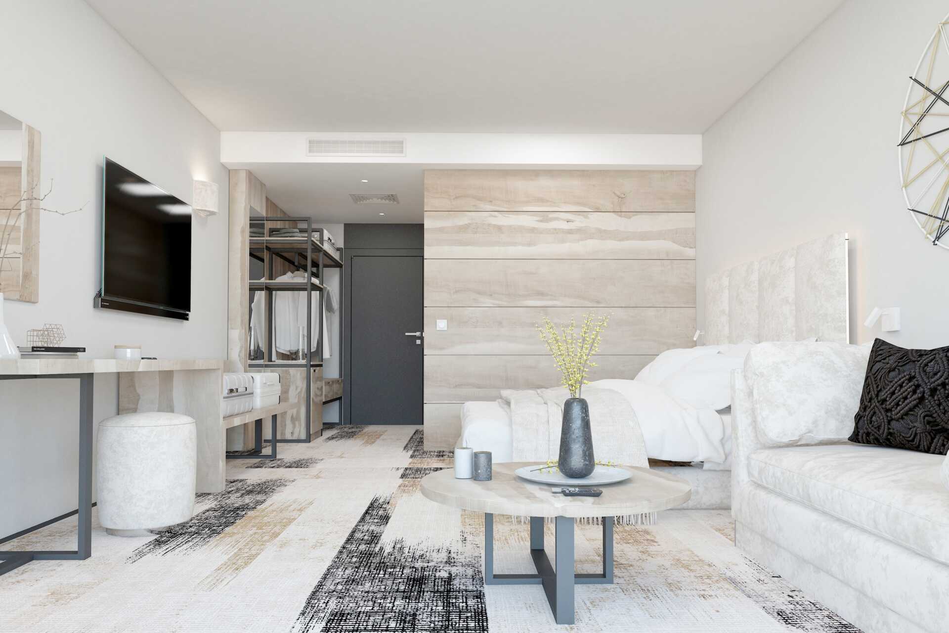 Standardrum med balkong eller terrass. En dubbelsäng eller två enkelsängar. Möjlighet till extrabädd i bäddsoffa. Wifi och luftkonditionering ingår. Kylskåp. Tv med internationella kanaler. Heltäckningsmatta. Hårtork. Badrum med dusch och wc. Städning 7 ggr/vecka.