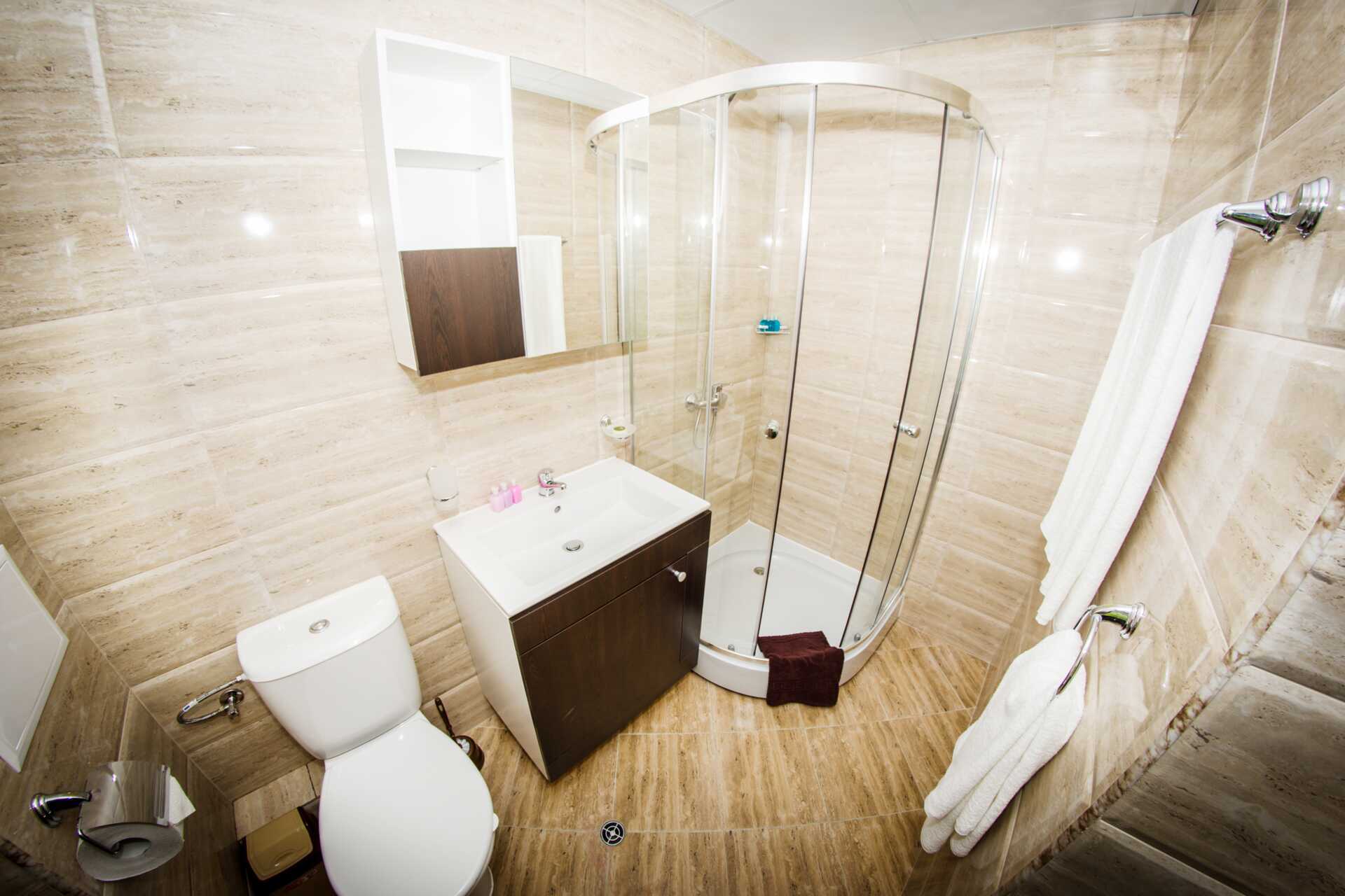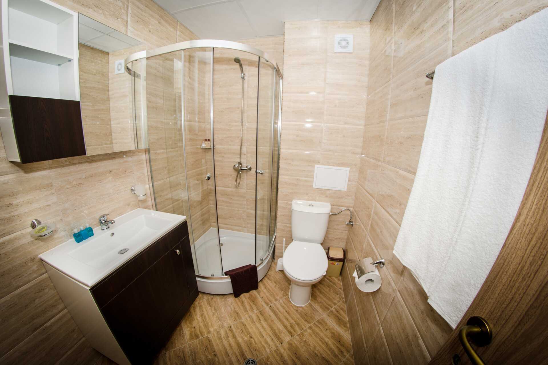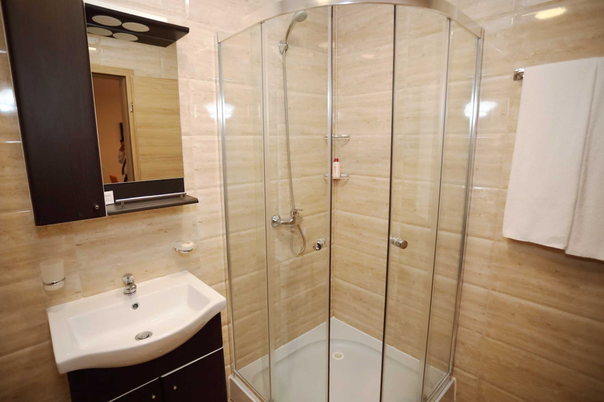 Trerumslägenhet med balkong. Två sovrum och ett kombinerat vardagsrum/minikök. Ett sovrum med en dubbelsäng och ett sovrum med två enkelsängar. Möjlighet till extrabädd i bäddsoffa. Minikök med kokplattor, fläkt, kylskåp, vattenkokare, brödrost, mikrovågsugn och enkel köksutrustning. I vissa lägenheter finns också en ugn. Wifi, luftkonditionering och deponering ingår. Tv med internationella kanaler. Tvättmaskin. Strykjärn och strykbräda. Hårtork. Badrum med dusch och wc. Städning 7 ggr/vecka.