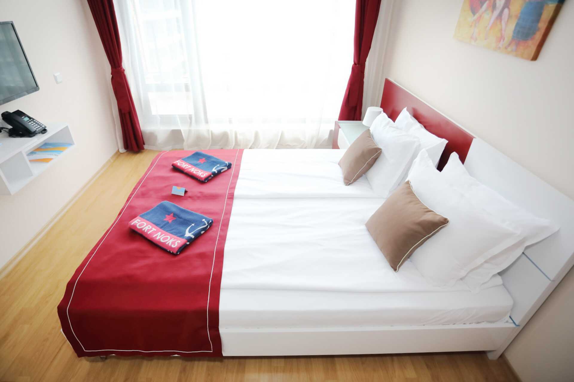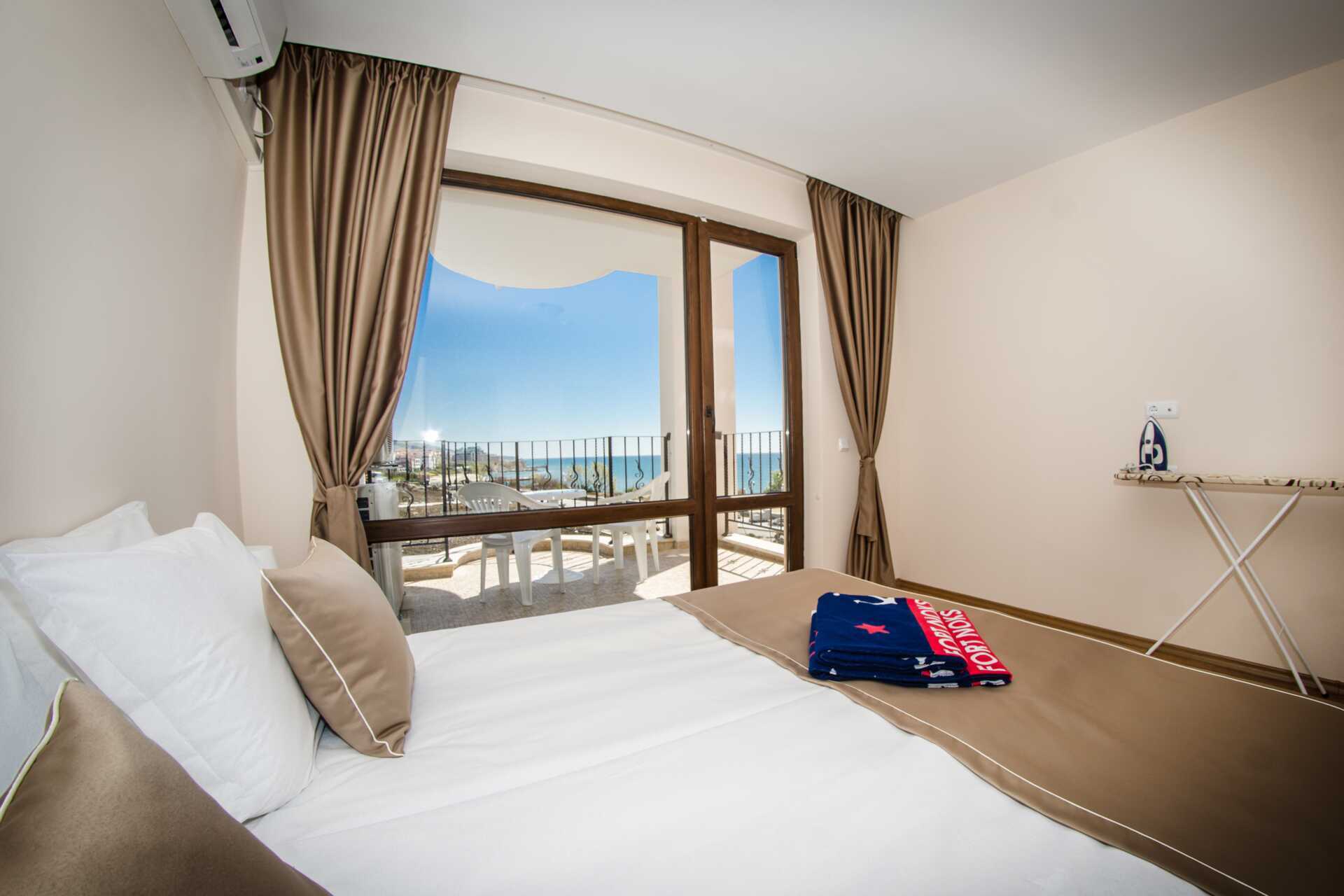 Större dubbelrum med balkong. En dubbelsäng eller två enkelsängar. Wifi, luftkonditionering och deponering ingår. Kylskåp, mikrovågsugn och vattenkokare. Tv med internationella kanaler. Strykjärn och strykbräda. Hårtork. Badrum med dusch och wc. Städning 7 ggr/vecka.