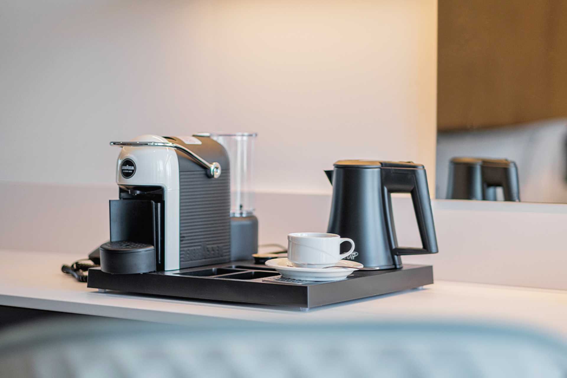 Enkelrum med balkong eller terrass. En dubbelsäng. Wifi, luftkonditionering och deponering ingår. Minibar. Lavazza kaffemaskin - kapslar ingår. Vattenkokare samt kaffe och te. Tv med internationella kanaler. Heltäckningsmatta. Hårtork. Badrum med dusch och wc. Städning 7 ggr/vecka.