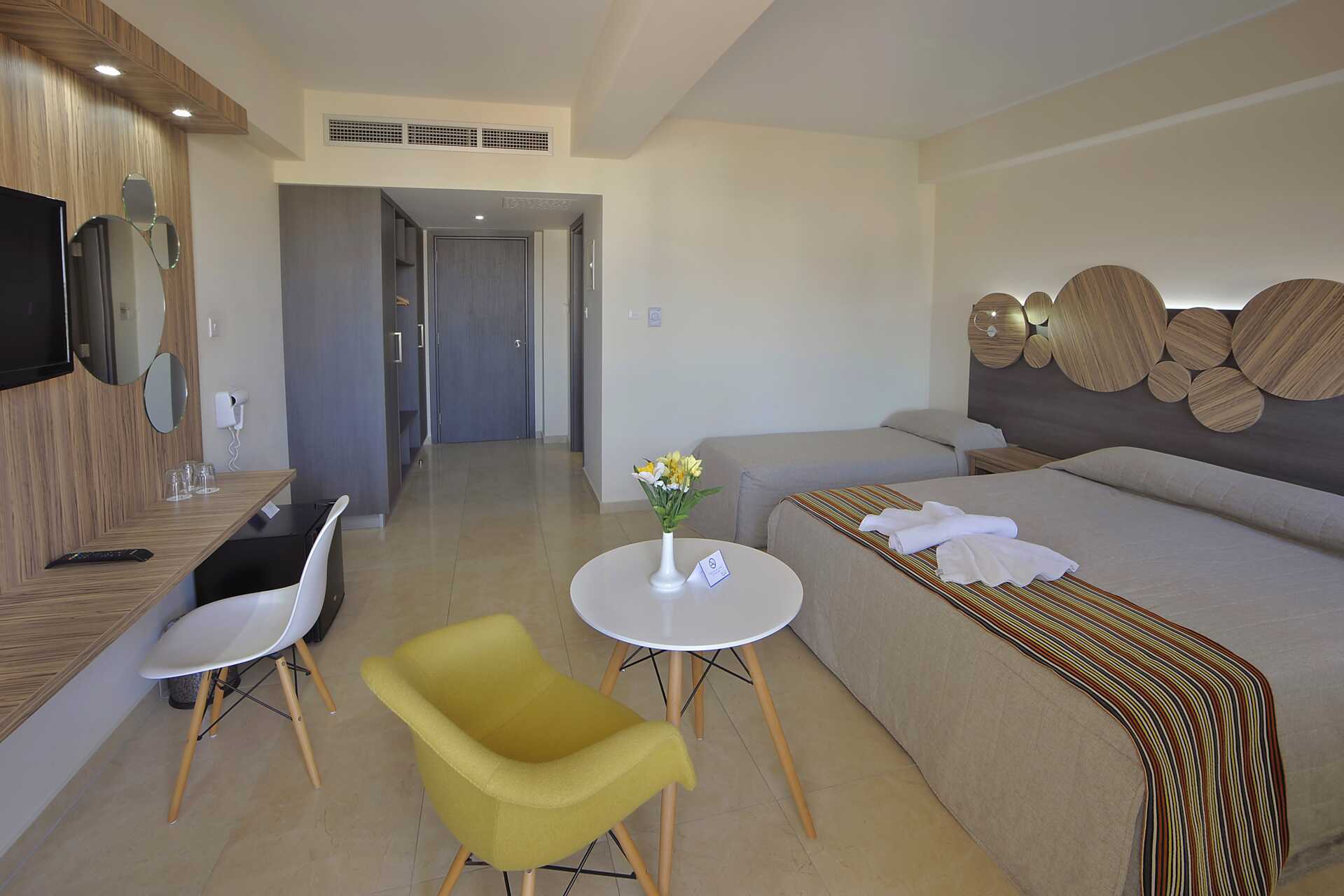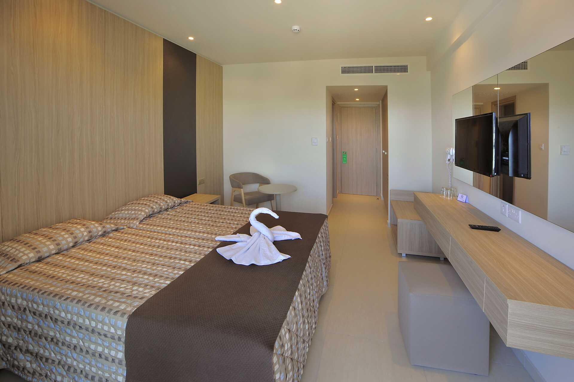 Dubbelrum med balkong, vissa med havsutsikt. En dubbelsäng eller två enkelsängar. Möjlighet till extrabädd i hopvikbar säng eller i en enkelsäng. Wifi och luftkonditionering ingår. Deponering mot avgift. Kylskåp. Vattenkokare samt kaffe och te. Tv med internationella kanaler. Hårtork. Badrum med dusch och wc. Städning 7 ggr/vecka.