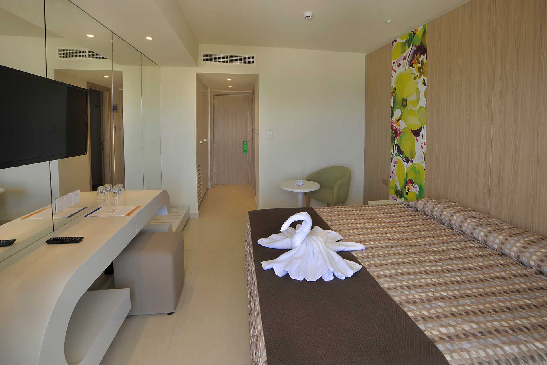 Luxury Room med balkong, vissa med havsutsikt. Rummen ligger på femte våningen i byggnaden Imperial. En dubbelsäng eller två enkelsängar. Möjlighet till extrabädd i hopvikbar säng eller i enkelsäng. Wifi och luftkonditionering ingår. Deponering mot avgift. Kylskåp. Vattenkokare samt kaffe och te. Tv med internationella kanaler. Badrockar och tofflor. Hårtork. Badrum med dusch och wc. Städning 7 ggr/vecka.