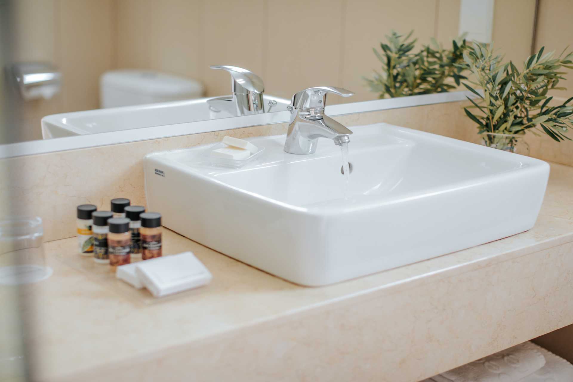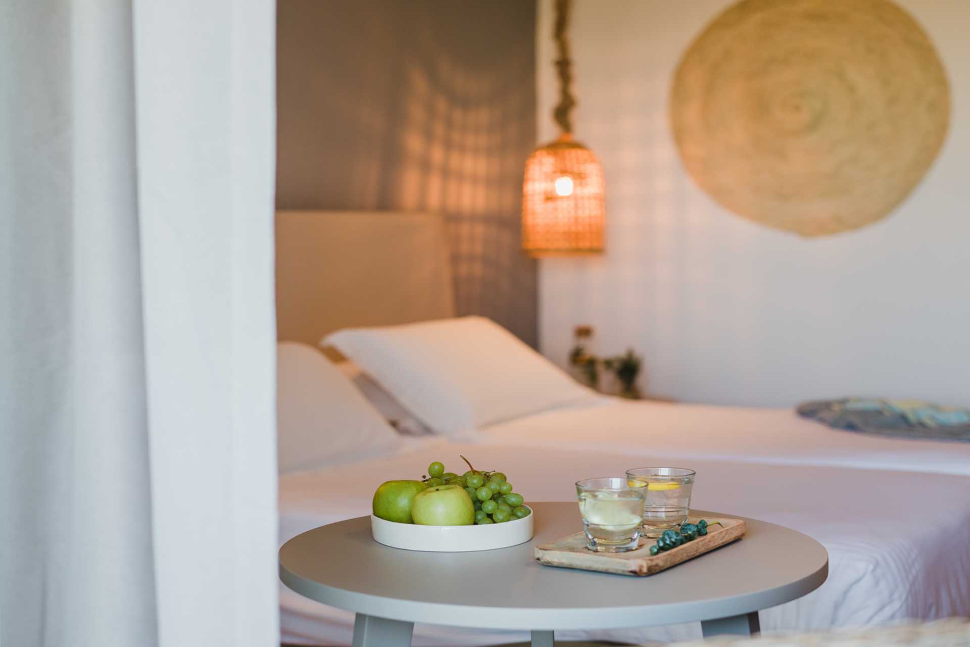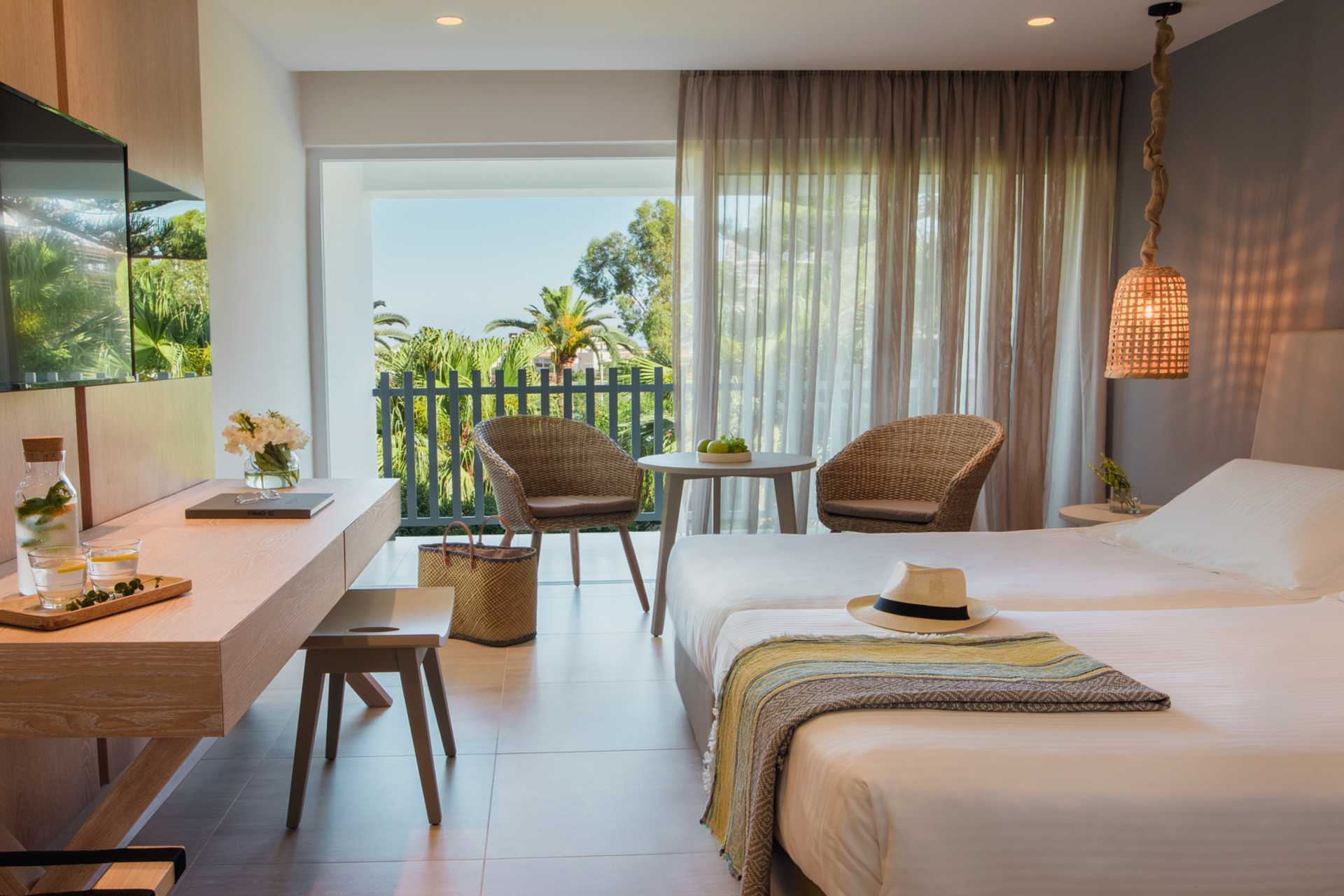 Superiorum med balkong och havsutsikt. Två enkelsängar. Möjlighet till extrabädd i enkelsäng. Wifi, luftkonditionering och deponering ingår. Kylskåp. Vattenkokare samt kaffe och te. Espressomaskin. Tv med internationella kanaler. Strykjärn och strykbräda. Badrockar och tofflor. Poolhanddukar. Hårtork. Badrum med dusch samt wc. Städning 7 ggr/vecka. Barn under två år räknas in i max antal personer i rummet.