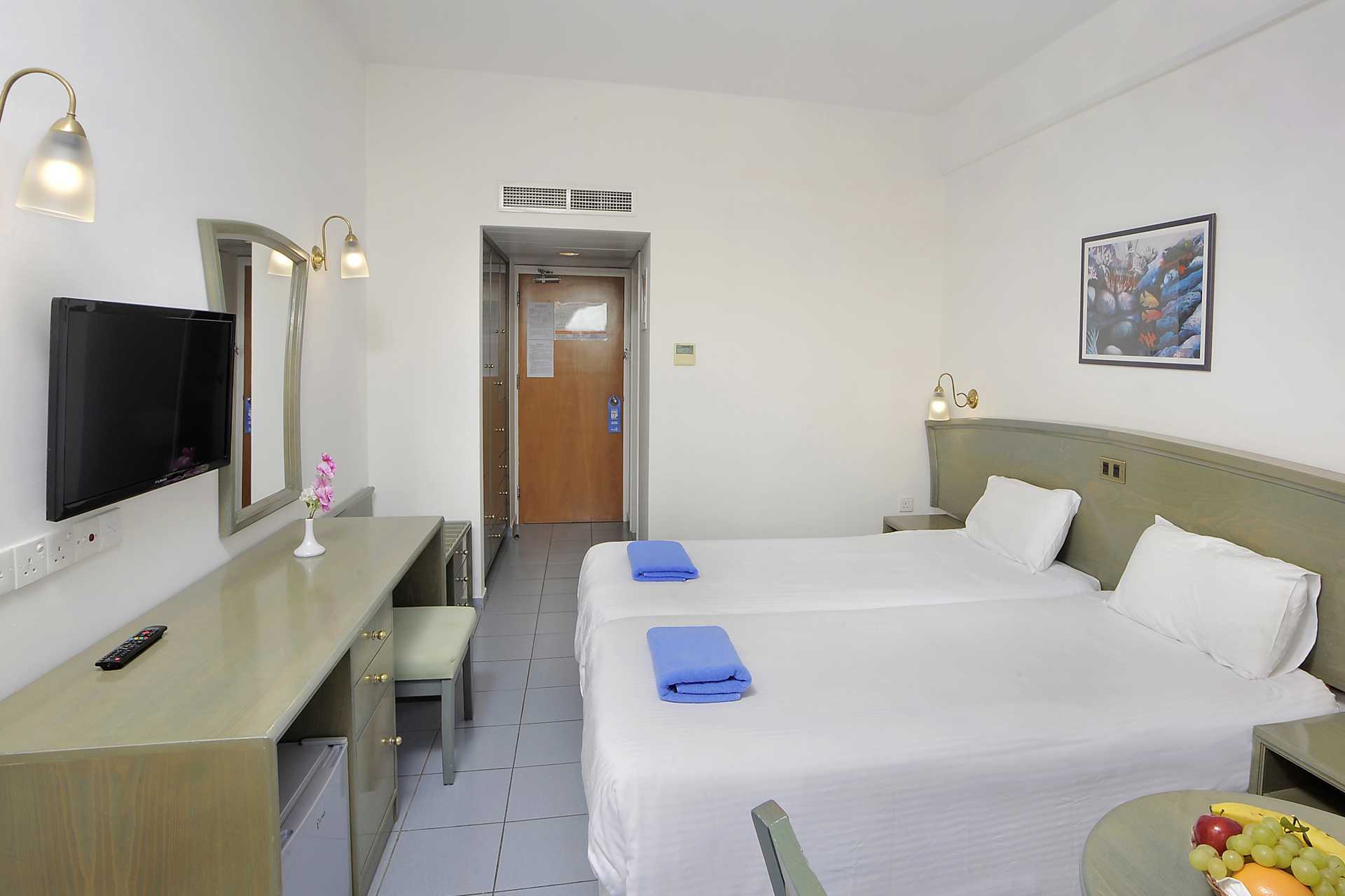 Dubbelrum med balkong, vissa med begränsad havsutsikt. Två enkelsängar. Möjlighet med extrabädd i enkelsäng. Observera att rummet kan kännas trångt när man bor tre personer i rummet. Luftkonditionering och deponering ingår. Kylskåp. Tv med internationella kanaler. Hårtork. Badrum med dusch samt wc. Städning 7 ggr/vecka. Barn under två år räknas in i maxantalet personer i rummet.