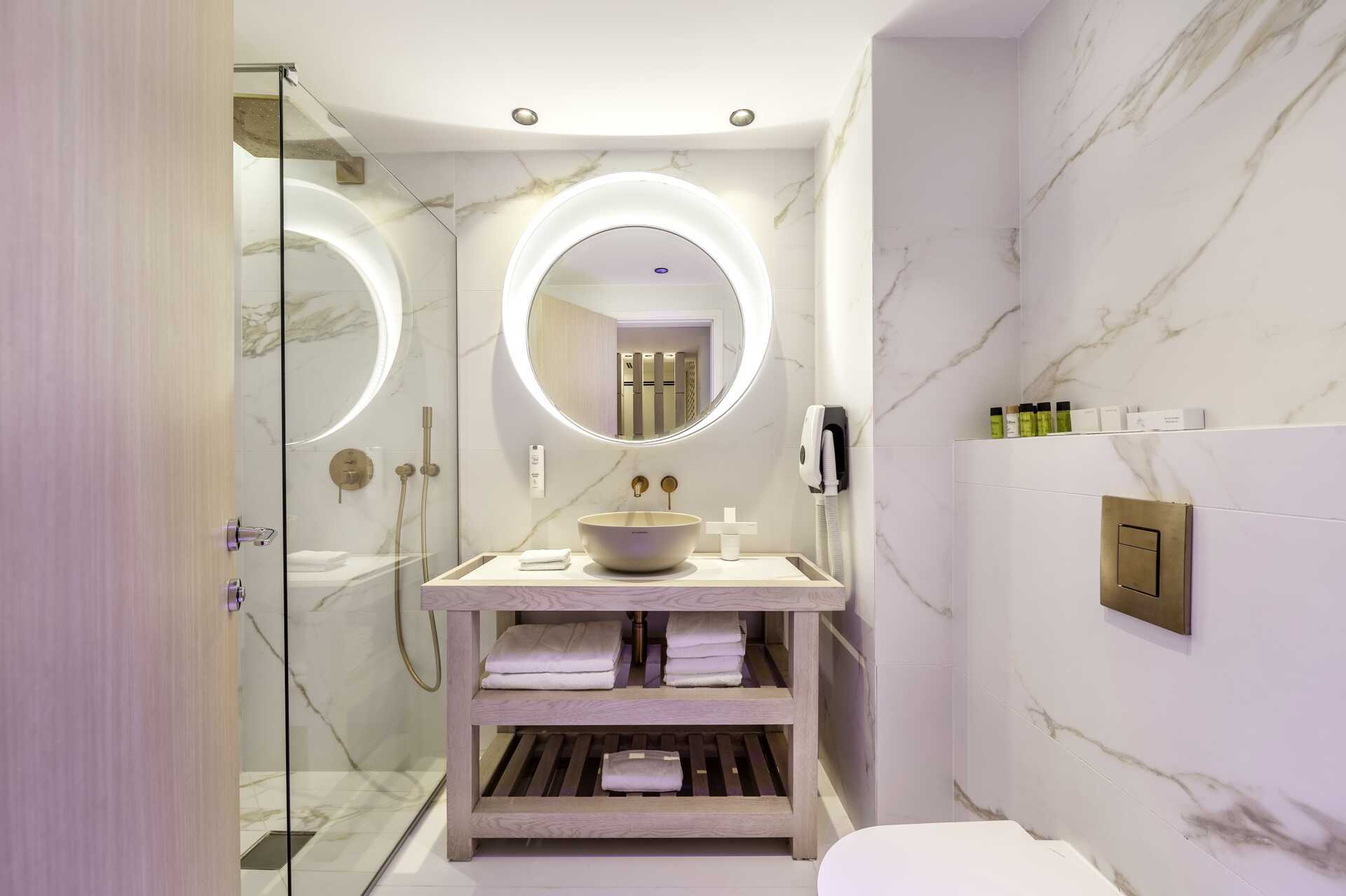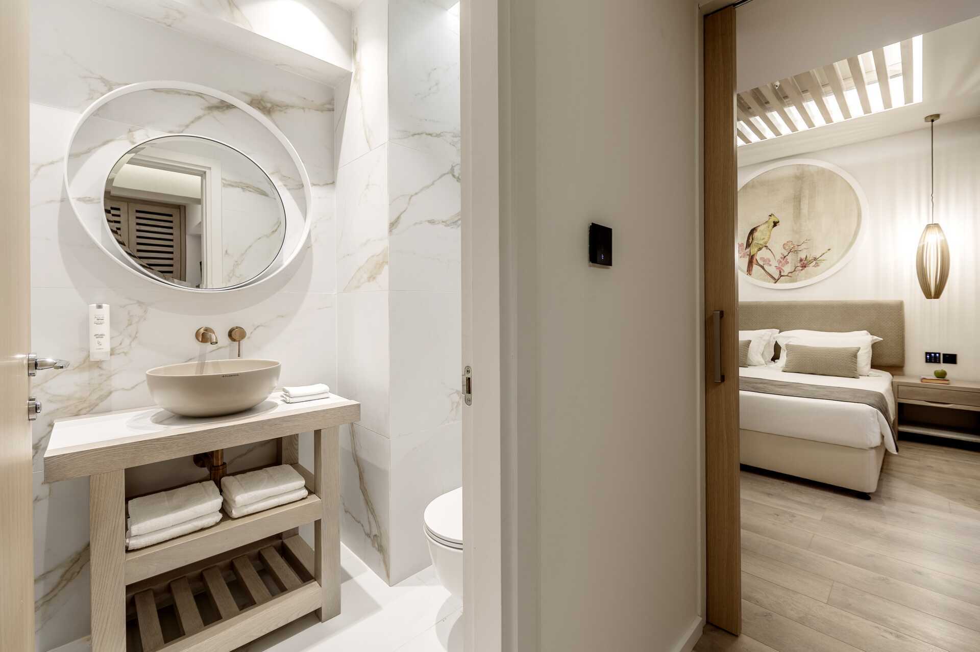 Juniorsvit med balkong och havsutsikt. En dubbelsäng. Möjlighet till extrabädd i bäddsoffa eller i hopvikbar säng. Wifi, luftkonditionering och deponering ingår. Minibar mot avgift. Vattenkokare samt kaffe och te. Kaffemaskin. Tv med internationella kanaler. Strykjärn och strykbräda. Badrockar och tofflor. Hårtork. Badrum med badkar och wc. Städning 7 ggr/vecka. Barn under två år räknas in i maxantalet personer i rummet.