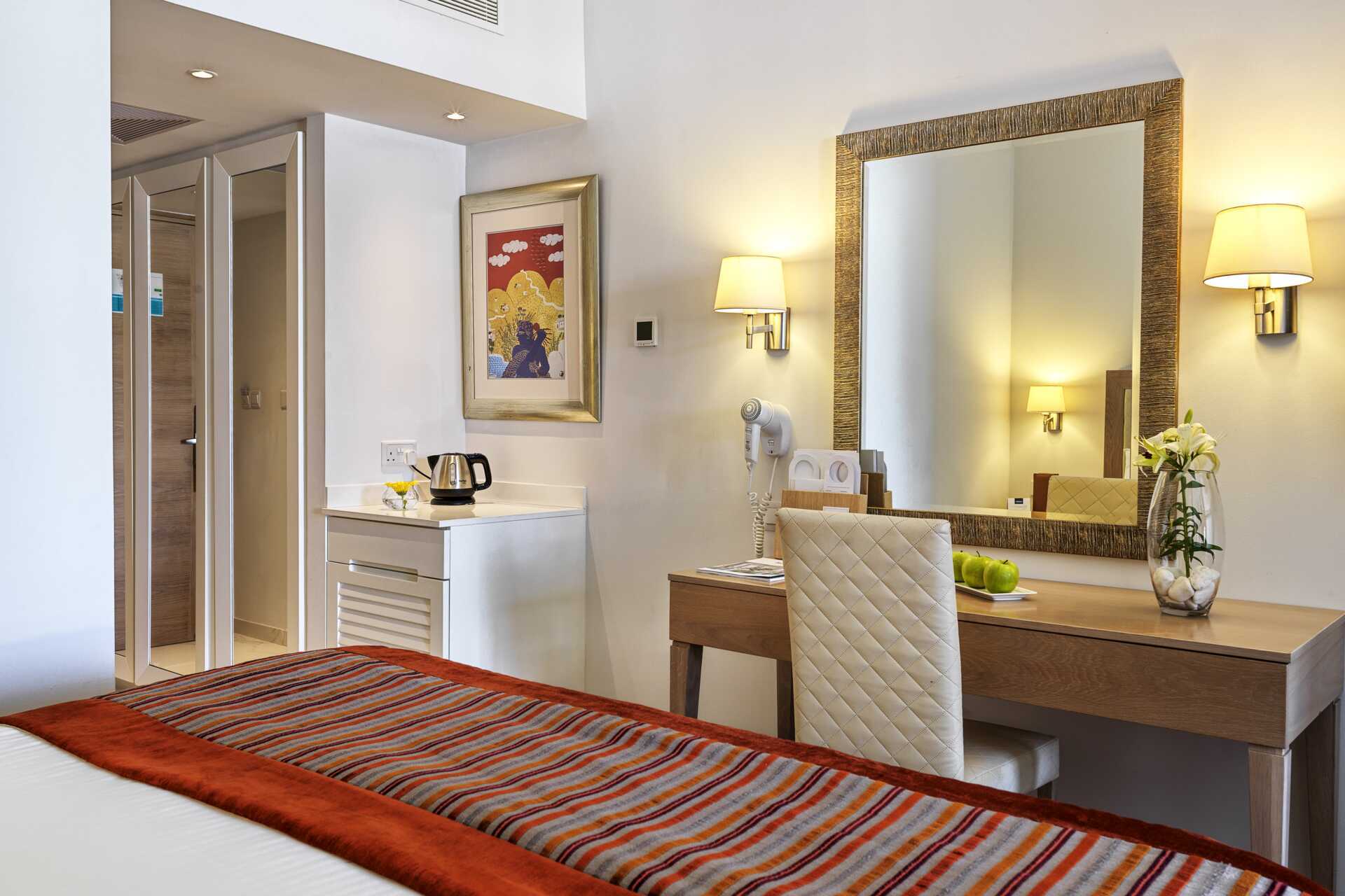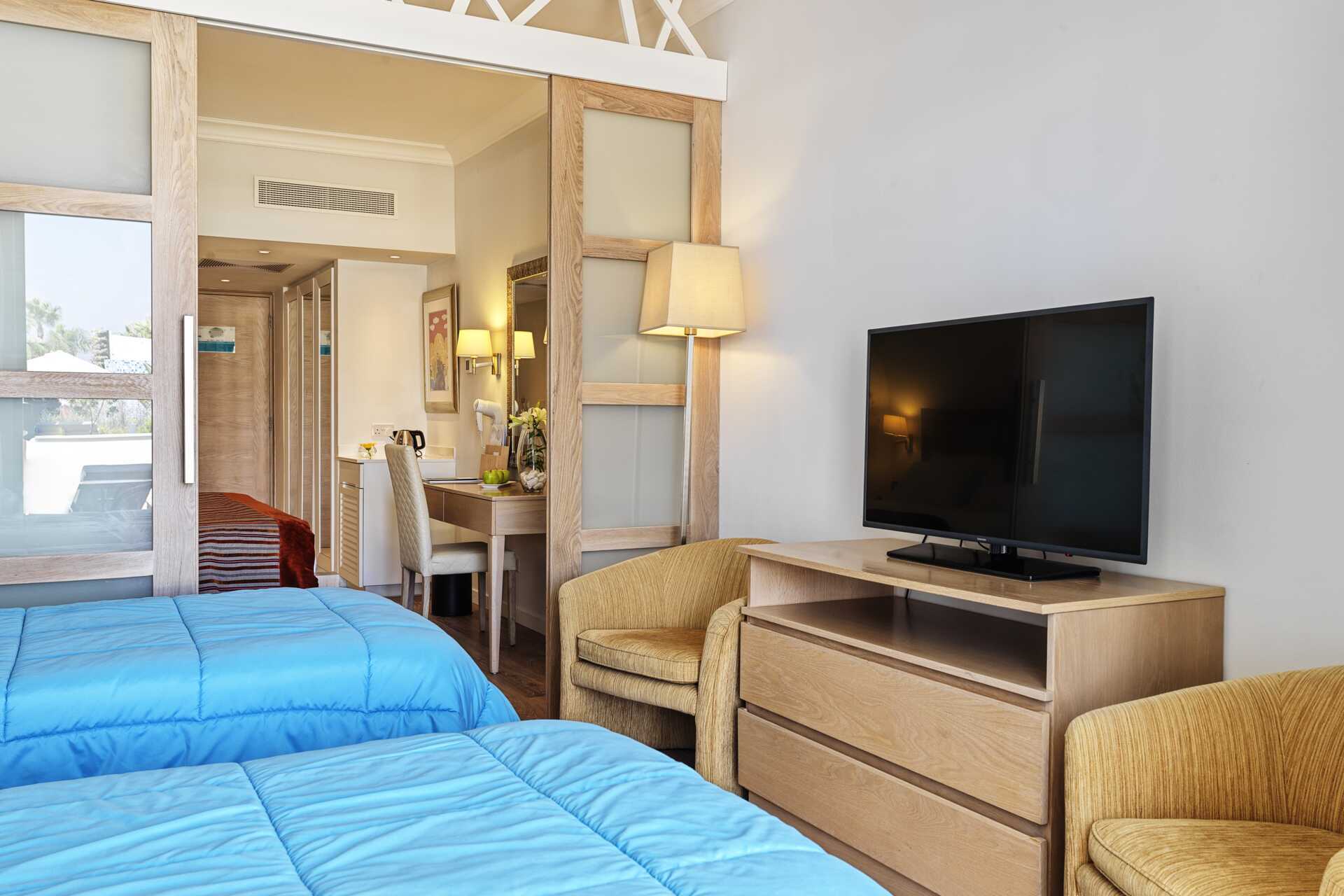 Superiorrum med balkong. En dubbelsäng eller två enkelsängar. Möjlighet till extrabädd i bäddsoffa. Wifi, luftkonditionering och deponering ingår. Kylskåp. En flaska vatten ingår - fylls på dagligen. Vattenkokare samt kaffe och te. Tv med internationella kanaler. Badrockar och tofflor. Hårtork. Badrum med badkar och wc. Städning 7 ggr/vecka. Barn under två år räknas in i maxantalet personer i rummet.