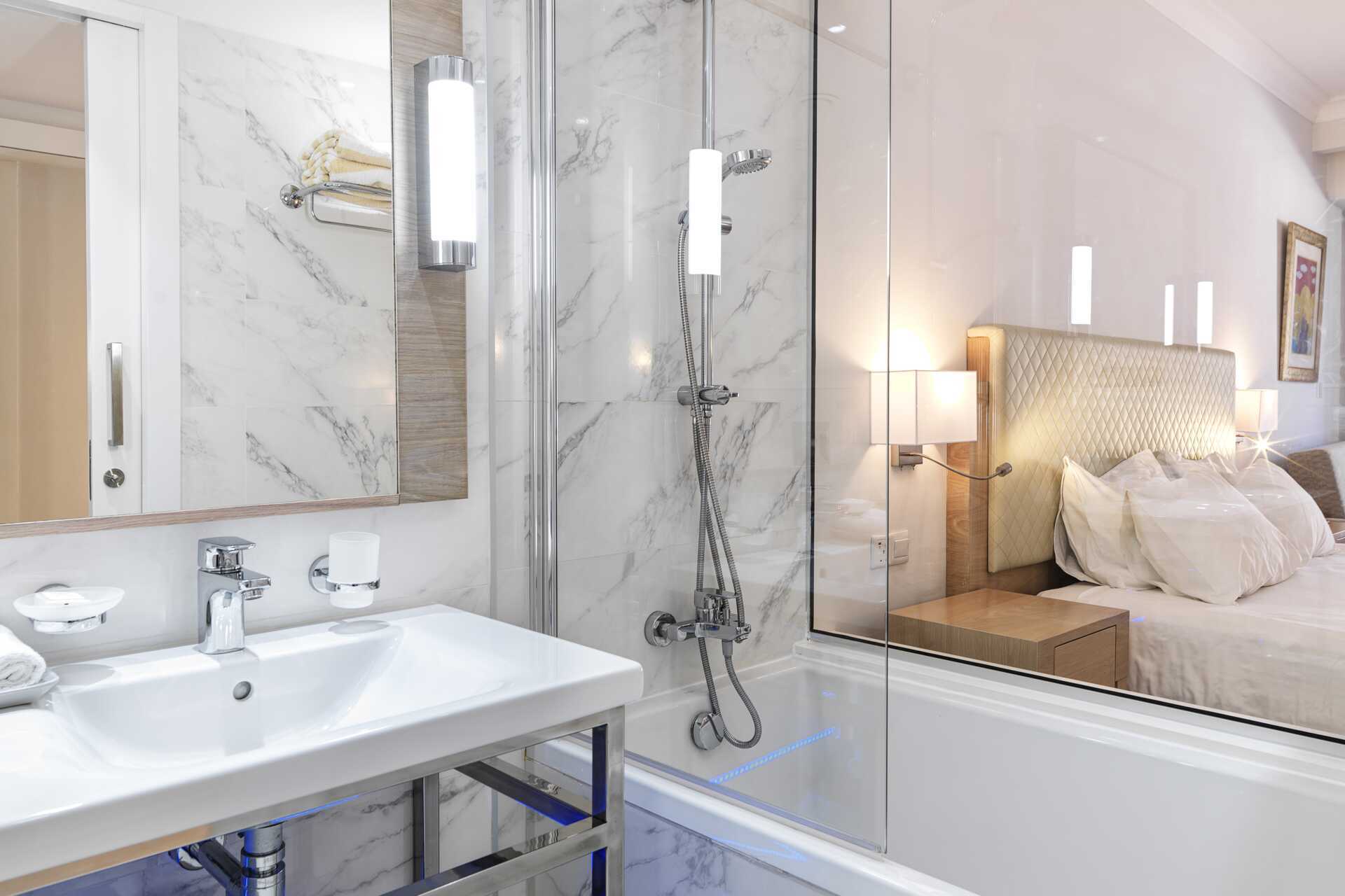 Deluxerum med fransk balkong. En dubbelsäng eller två enkelsängar. Möjlighet till extrabädd i bäddsoffa. Wifi, luftkonditionering och deponering ingår. Kylskåp. En vattenflaska ingår, daglig påfyllning. Vattenkokare samt kaffe och te. Tv med internationella kanaler. Badrockar och tofflor. Hårtork. Badrum med dusch och wc. Städning 7 ggr/vecka. Barn under två år räknas in i maxantalet personer i rummet.
