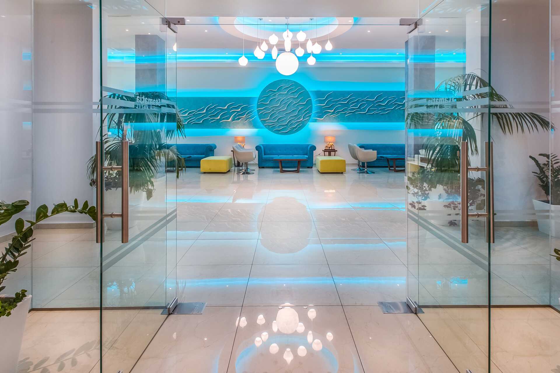 Endast en hiss, dessutom långsam. Fel beskrivning av rummet, ej superier Balkong mot hotellvägg 4m bort Dålig ventilation badrum, endast lien elfläkt