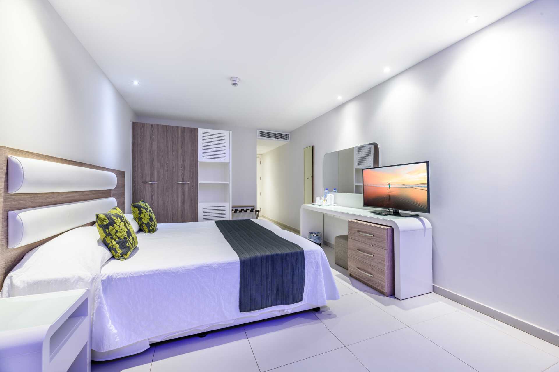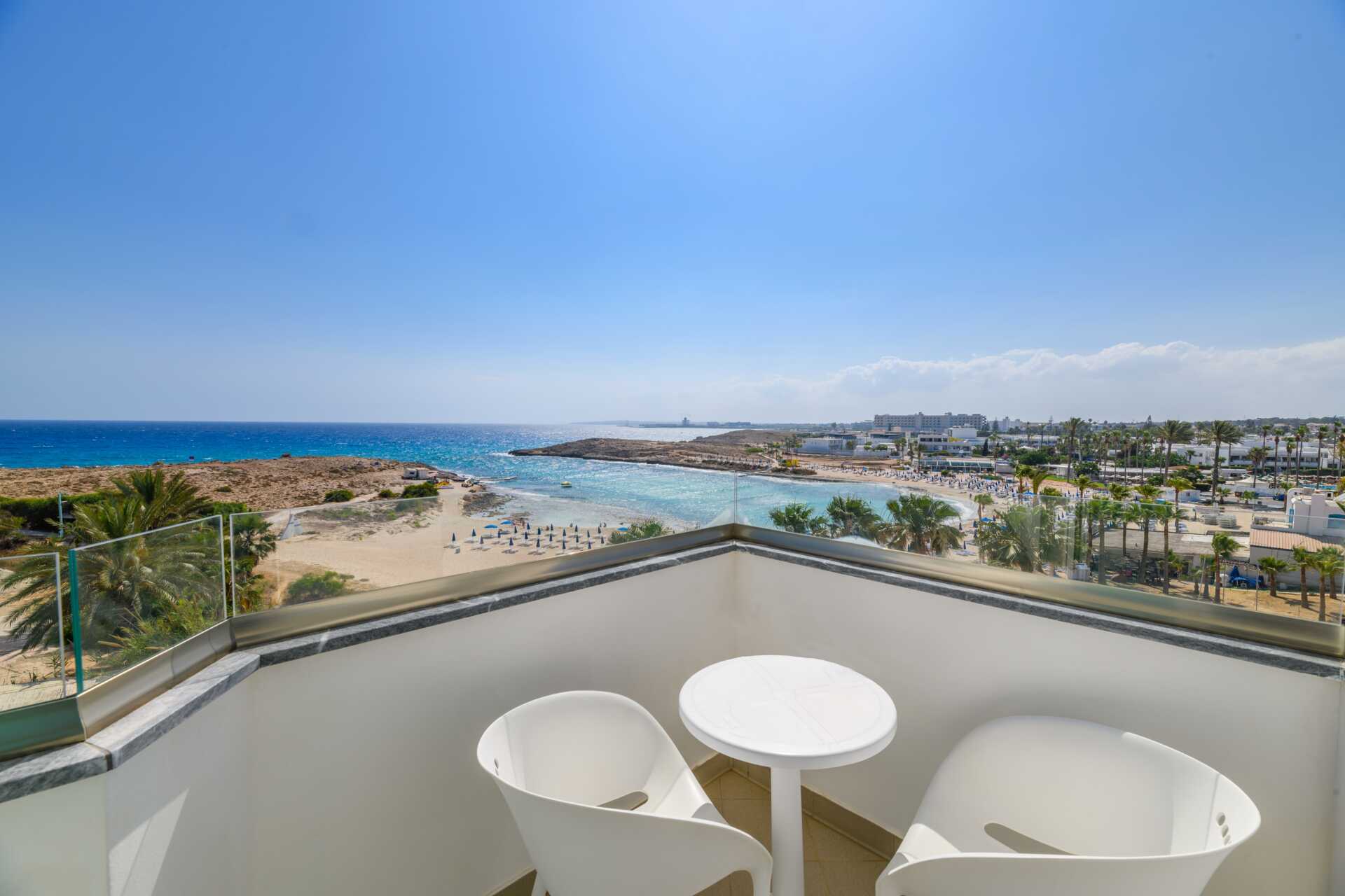 Deluxerum med balkong, vissa med begränsad havsutsikt eller med havsutsikt. En dubbelsäng eller två enkelsängar. Möjlighet till extrabädd i hopvikbar säng. Wifi, luftkonditionering och deponering ingår. Kylskåp. Vattenkokare samt kaffe och te. Tv med internationella kanaler. Hårtork. Badrum med dusch och wc. Städning 7 ggr/vecka.