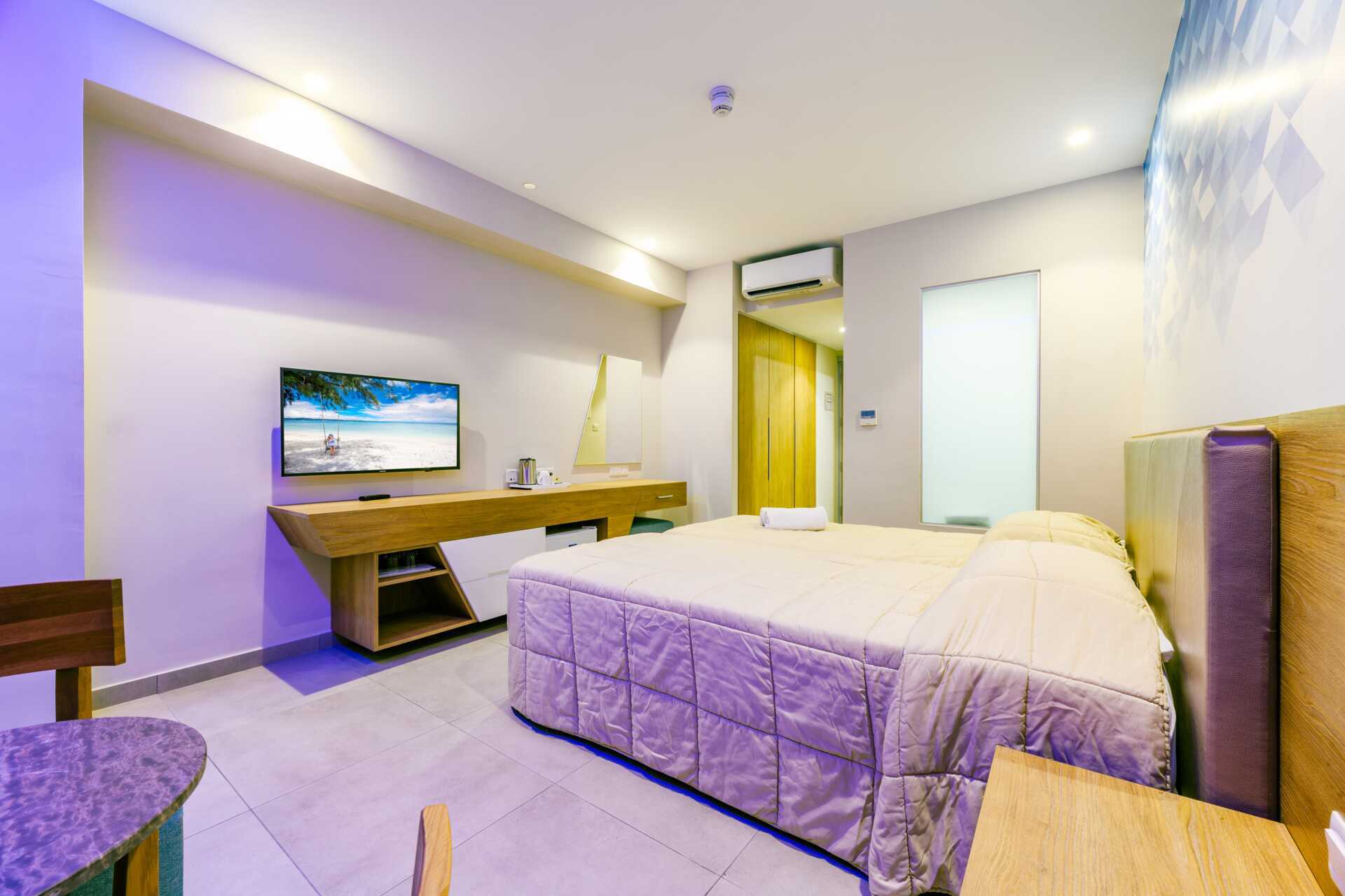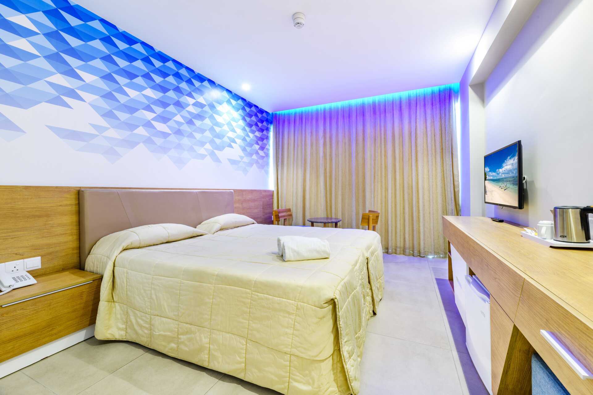 Deluxerum med balkong, vissa med poolutsikt. En dubbelsäng eller två enkelsängar. Möjlighet till extrabädd i hopvikbar säng. Wifi, luftkonditionering och deponering ingår. Kylskåp. Vattenkokare samt kaffe och te. Tv med internationella kanaler. Strykjärn och strykbräda. Hårtork. Badrum med dusch och wc. Städning 7 ggr/vecka.