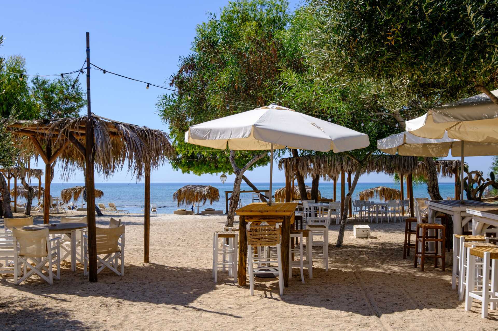 Thalassines Beach Villas ligger precis vid stranden och på stranden hittar du en bar som är öppen från morgon till kväll. Här kan du njuta av loungesoffor, frukost, lättare måltider under dagen, dryck och drinkar. Här kan du även några kvällar i veckan se filmer direkt från hängmattan. Solstolar och parasoller ingår på stranden.