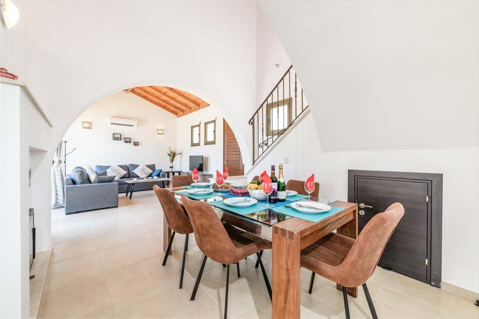 Om värmen blir för hög är den luftkonditionerade interiören i denna villa det bästa stället att fly och svalka sig. Luftig, öppen planlösning, ljus och ljus, koppla av i vardagsrummet och njut av det i de bekväma sofforna, även om du kanske aldrig vill gå upp igen när du väl sjunkit ner i de mjuka kuddarna! Om du lyckas ta dig uppför trapporna, se till att ta en kvällsdrink på balkongen och beundra den hisnande utsikten, innan du beger dig till de mysiga och inbjudande sovrummen för en uppfriskande natts sömn.