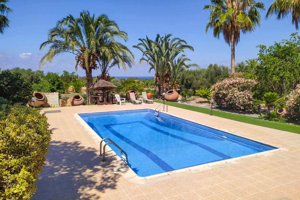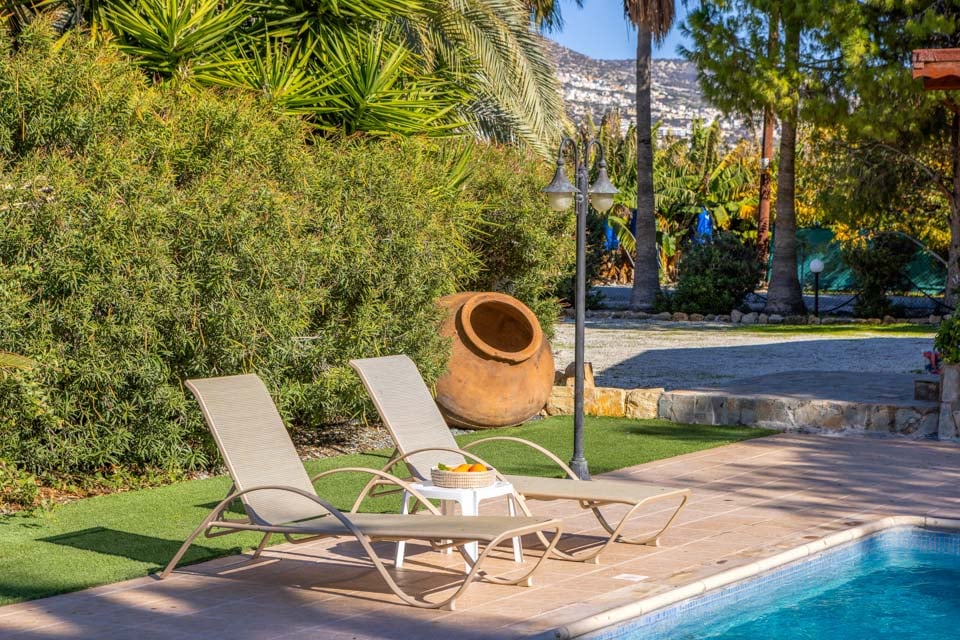Och det är från din privata pool som du kommer att skapa de mest oförglömliga minnena från din tid på Cypern! Känslan av det svala och uppfriskande vattnet när det sköljer över dig under den underbara middagssolen är verkligen oslagbar, se bara till att du kommer ihåg att ta med solkräm med hög SPF! Efter att ha tagit ett dopp i din privata oas, dra ut gardinerna och läs en fängslande bok från solstolarna vid poolen – den perfekta platsen för lite cypriotisk lugn. Beläget i en lummig trädgård med höga träd som omger dig är det lätt att hitta en plats utanför solen för att njuta av skuggan, försök bara att inte slumra till i värmen!