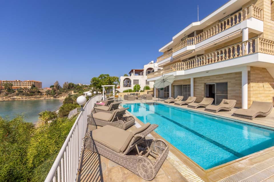 Med fantastiska rustika stenfasader, traditionell cypriotisk charm och terrakottaröda tak känns Katina Beach Villa som taget direkt ur ett vykort. Interiören talar för sig själv; rymlig och elegant designad med en lugnande färgpalett av vitt och beige, som utstrålar en känsla av lycklig lugn. De stora glasfönstren och dörrarna översvämmar utrymmet med naturligt solljus, vilket gör att gästerna kan njuta av den vackra naturen i varje hörn. På bottenvåningen finns en stor öppen planlösning med sittgrupp och matsal, med tillräckligt med plats för hela familjen att sträcka ut sig och koppla av. Köket är toppmodernt, med vackra träskåp och fullt utrustat med de senaste vitvarorna. För lite extra lyx finns det till och med ett spelrum med eget gym, bordtennisbord och biljardbord. Följ den stora trappan upp på övervåningen, där du hittar fem dubbelrum och två tvåbäddsrum.