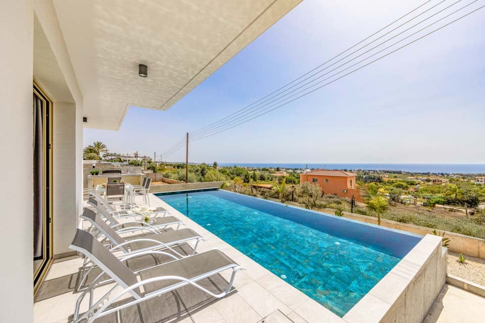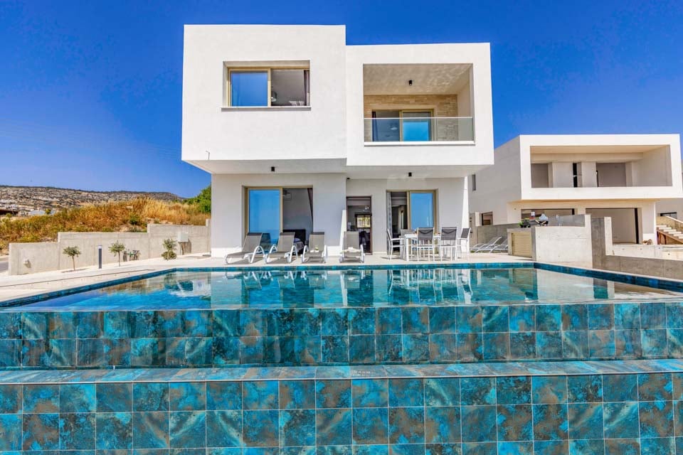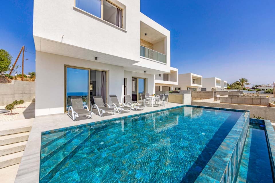 Stig in i ett vackert designat utrymme där modern elegans möter medelhavscharm. Vart och ett av de tre rymliga sovrummen är omtänksamt möblerade och erbjuder mjuka sängar, gott om förvaring och stora fönster som släpper in det härliga cypriotiska solskenet. Med tre moderna badrum är morgnarna en barnlek, även för större grupper eller familjer.