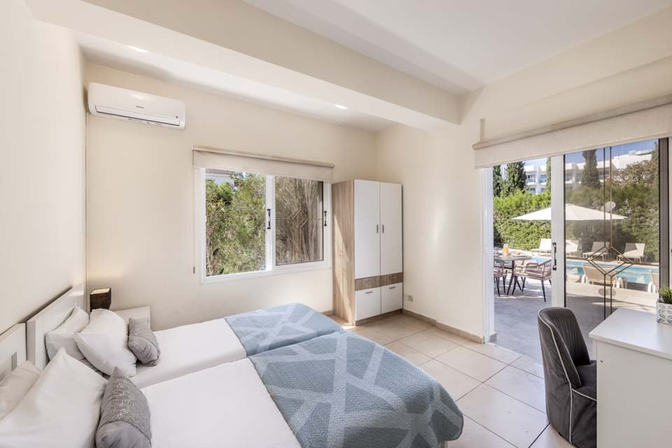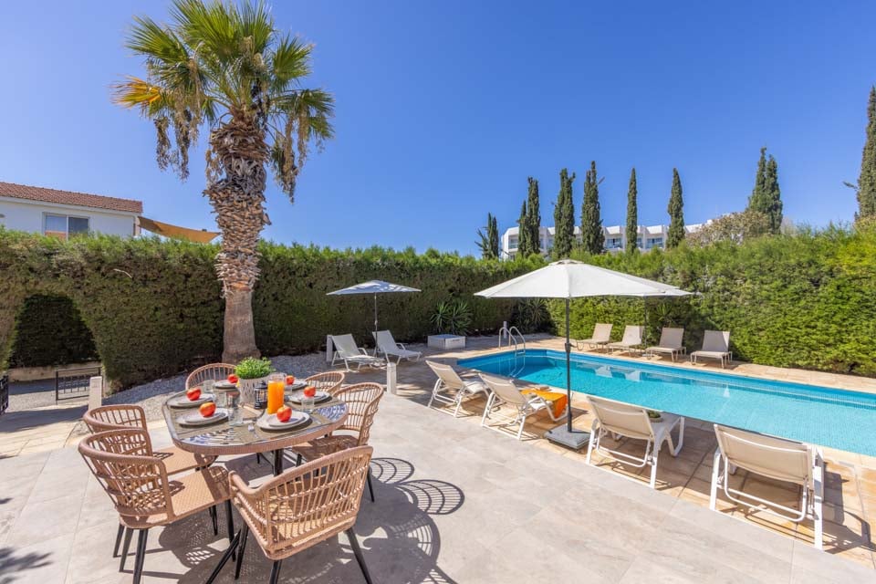 Inbäddat i den populära semesterorten Coral Bay, blir läget inte mycket bättre än på Villa Artemisia. På bara en kort promenad är du vid huvudgatan fylld med restauranger och barer som serverar allt från traditionella rätter till internationella favoriter och fina middagar. Flankerad av den gyllene cypriotiska kusten ligger Coral Bay Beachs fina sand och lugna vatten precis utanför dörren. Interiören är modern och avslappnad, inredd med ljusa färger, minimalistisk inredning och eleganta möbler. Det rymliga vardagsrummet och matplatsen på bottenvåningen har öppen planlösning och ansluter till det exklusiva köket, som har moderna vitvaror och en lång köksö för en enkel matlagningsupplevelse. När det är dags att gå och lägga sig har du tre dubbelrum och ett tvåbäddsrum fördelade på två våningar.