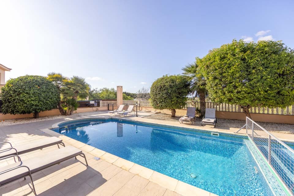 Villan har en stor privat pool med gångväg, inklusive ett stort privat utomhusområde med en matplats utomhus, en utomhuslounge och en komplett samling utemöbler inklusive solstolar och parasoller.