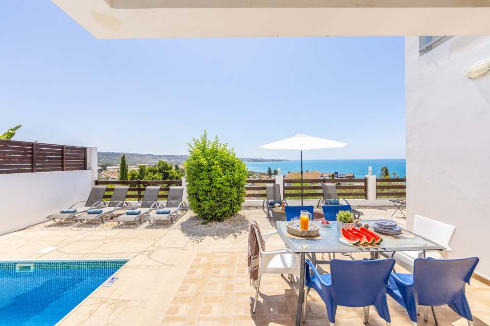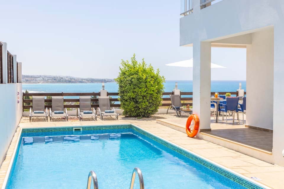 Villa Valentina Bay är en bit av paradiset, med direkt utsikt över Medelhavets glittrande vågor. Den har utformats för att visa upp Cyperns sublima kustlandskap, med havsutsikt från nästan alla rum. Det finns ingen bättre plats att njuta av det fridfulla landskapet än på terrassen. Poolen flankeras av solstolar och parasoller, så att du kan sola i den storslagna naturen mellan simturerna. Middagar tillbringas bäst utomhus, med elegant uteservering och en grillplats till ditt förfogande. Beläget bara fem minuter från Coral Bay, är du bara en kort promenad från dess förstklassiga restauranger och livliga barer. För strandälskare kan man besöka den berömda vita sandstranden med Blå Flagg, flankerad av lugnt vatten och perfekt för bad.