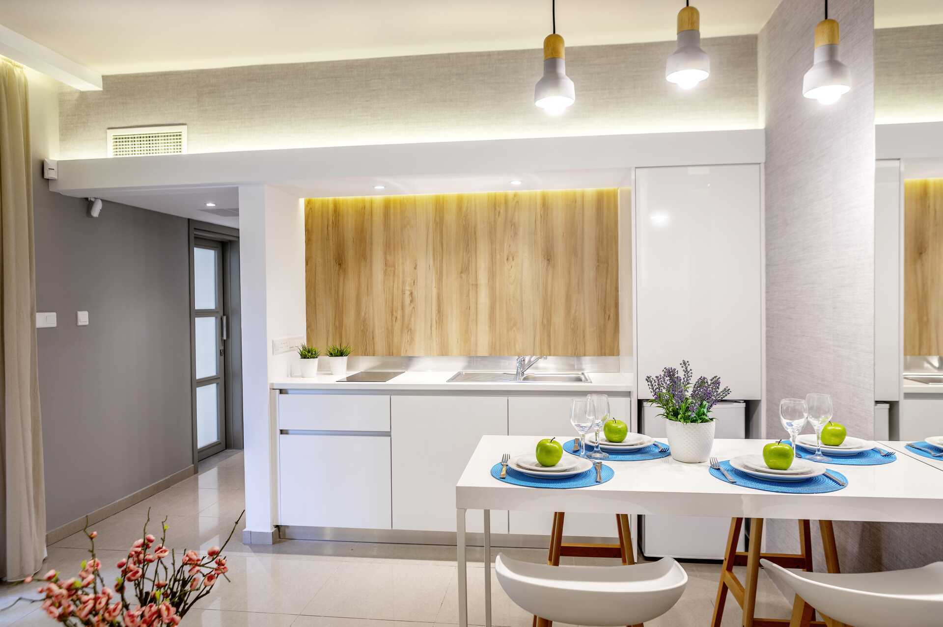Tvårumslägenheter superior med balkong eller markterrass. Ett sovrum och ett kombinerat vardagsrum med minikök. En dubbelsäng. Möjlighet till extrabädd i bäddbar soffa. Minikök med kokplattor, kylskåp, mikrovågsugn, vattenkokare samt enkel köksutrustning. Wifi, luftkonditionering och deponering ingår. Tv med internationella kanaler. Hårtork. Badrum med badkar eller dusch samt wc. Städning 6 ggr/vecka.