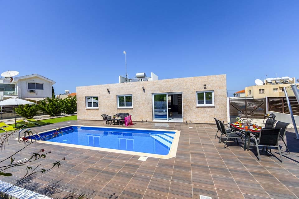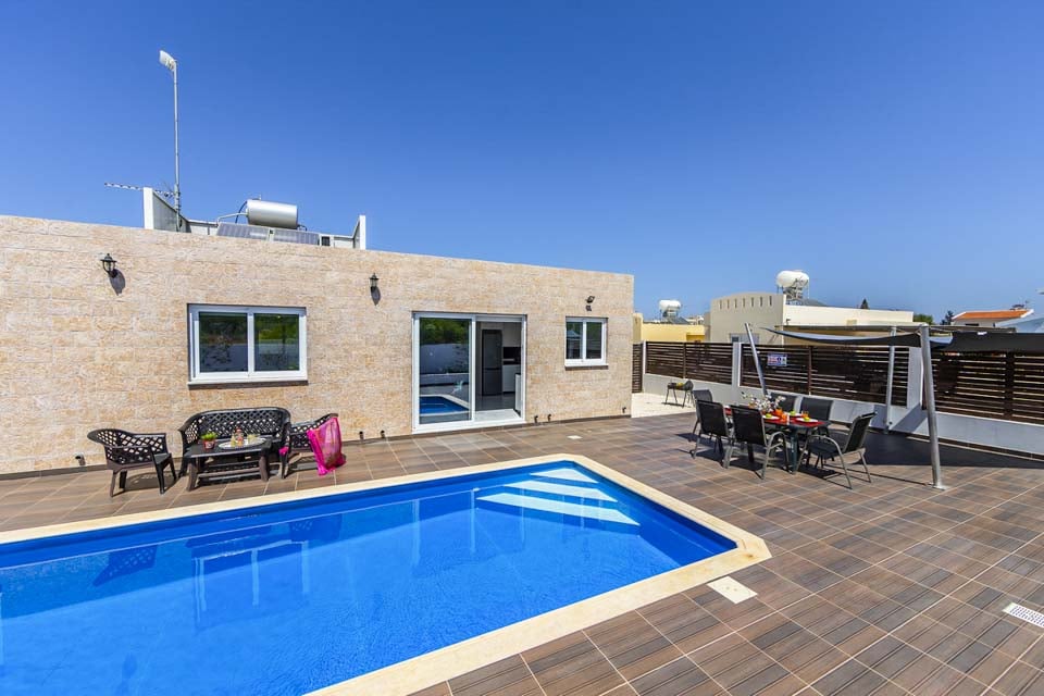 Om du är ute efter en cypriotisk semester med en stor terrass och ett stenkast från Protaras centrum, behöver du inte leta längre. Denna fastighet på bottenvåningen är ett utmärkt val för upp till sex gäster som vill utforska närområdet. Denna livliga semesterort är perfekt för dem som vill hålla sig sysselsatta både dag och natt. Du hittar en mängd lokala tavernor och restauranger, butiker och stormarknader, kaféer och barer. Det lokala köket får inte missas, och du har valt rätt ställe för att prova alla specialiteter, såsom mousaka, tzatziki-dipp, souvlaki och halloumispett.