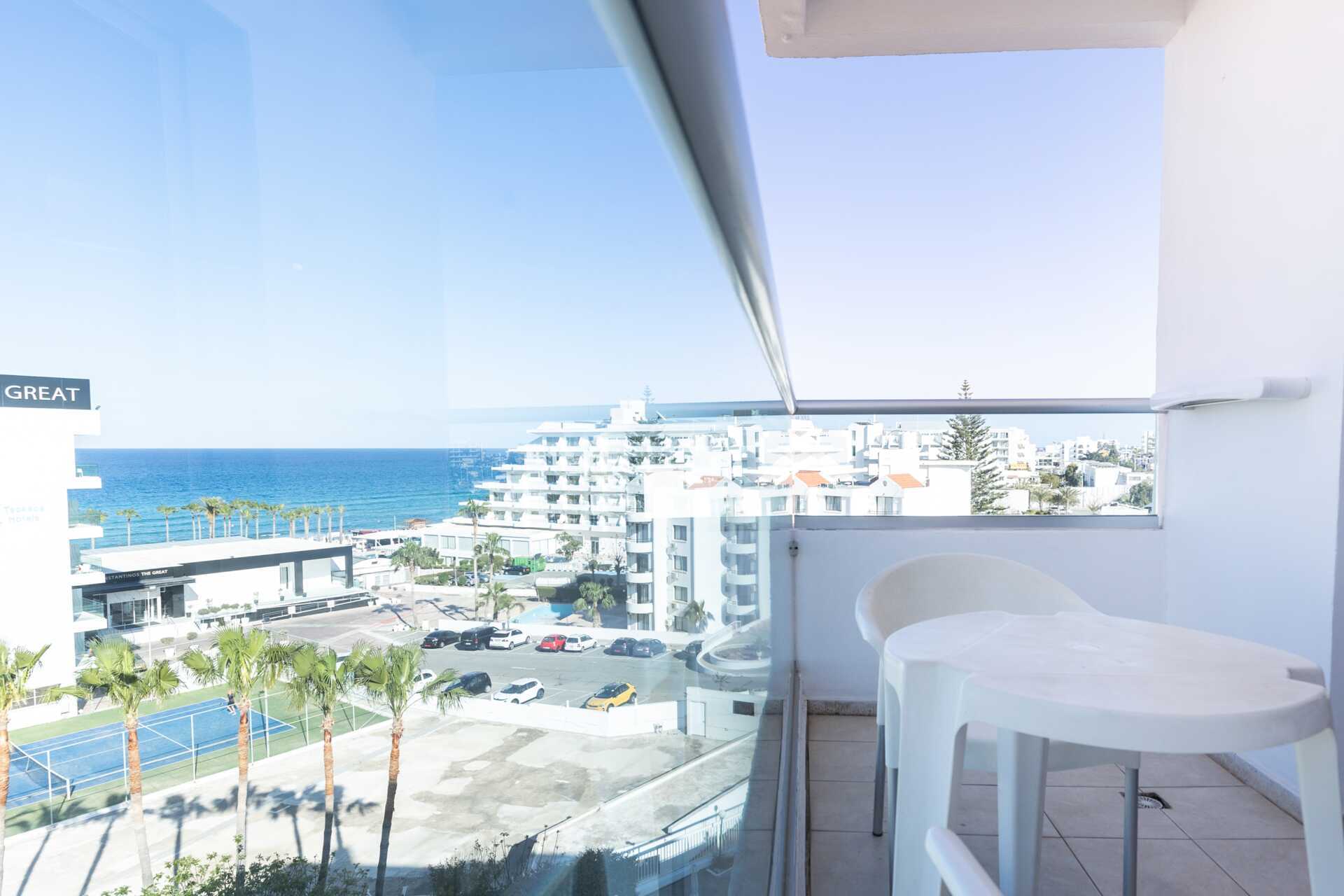 Tvårumslägenhet med balkong, vissa med havsutsikt eller med begränsad havsutsikt. Sovrum och ett kombinerat vardagsrum/minikök. En dubbelsäng eller två enkelsängar. Möjlighet till extrabädd i bäddsoffa. Minikök med kokplattor, kylskåp, mikrovågsugn, brödrost, vattenkokare och enkel köksutrustning. Wifi, luftkonditionering och deponering ingår. Tv med internationella kanaler. Hårtork. Badrum med badkar och wc. Städning 7 ggr/vecka.
