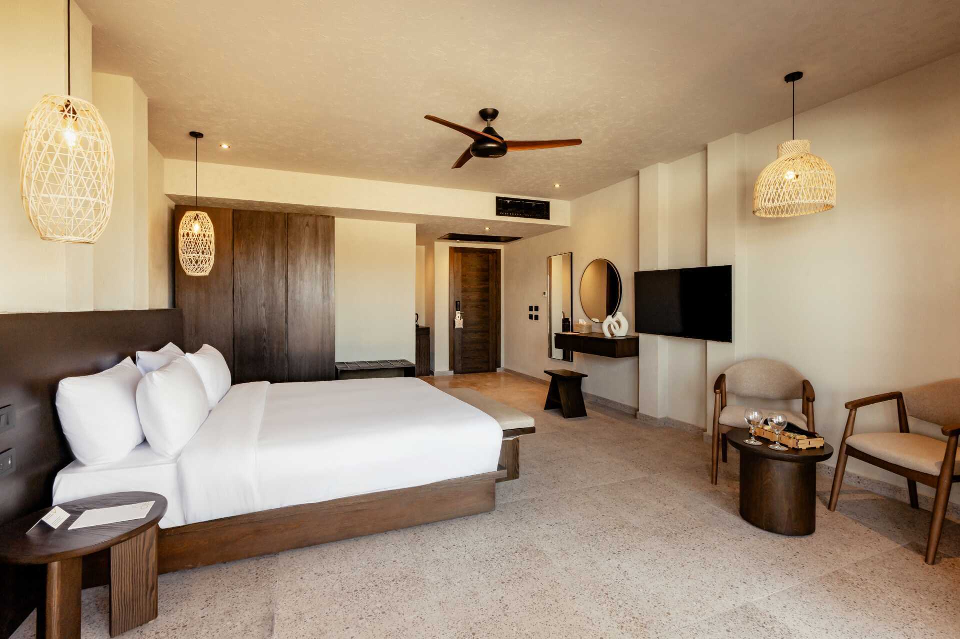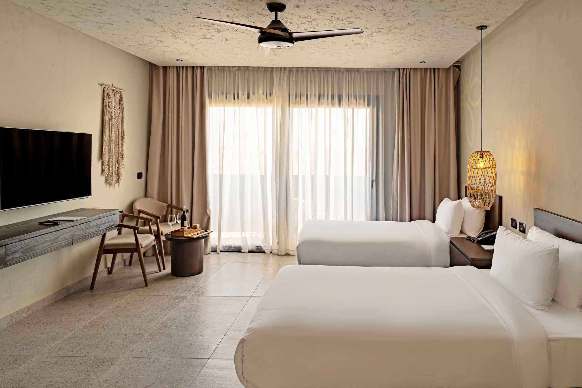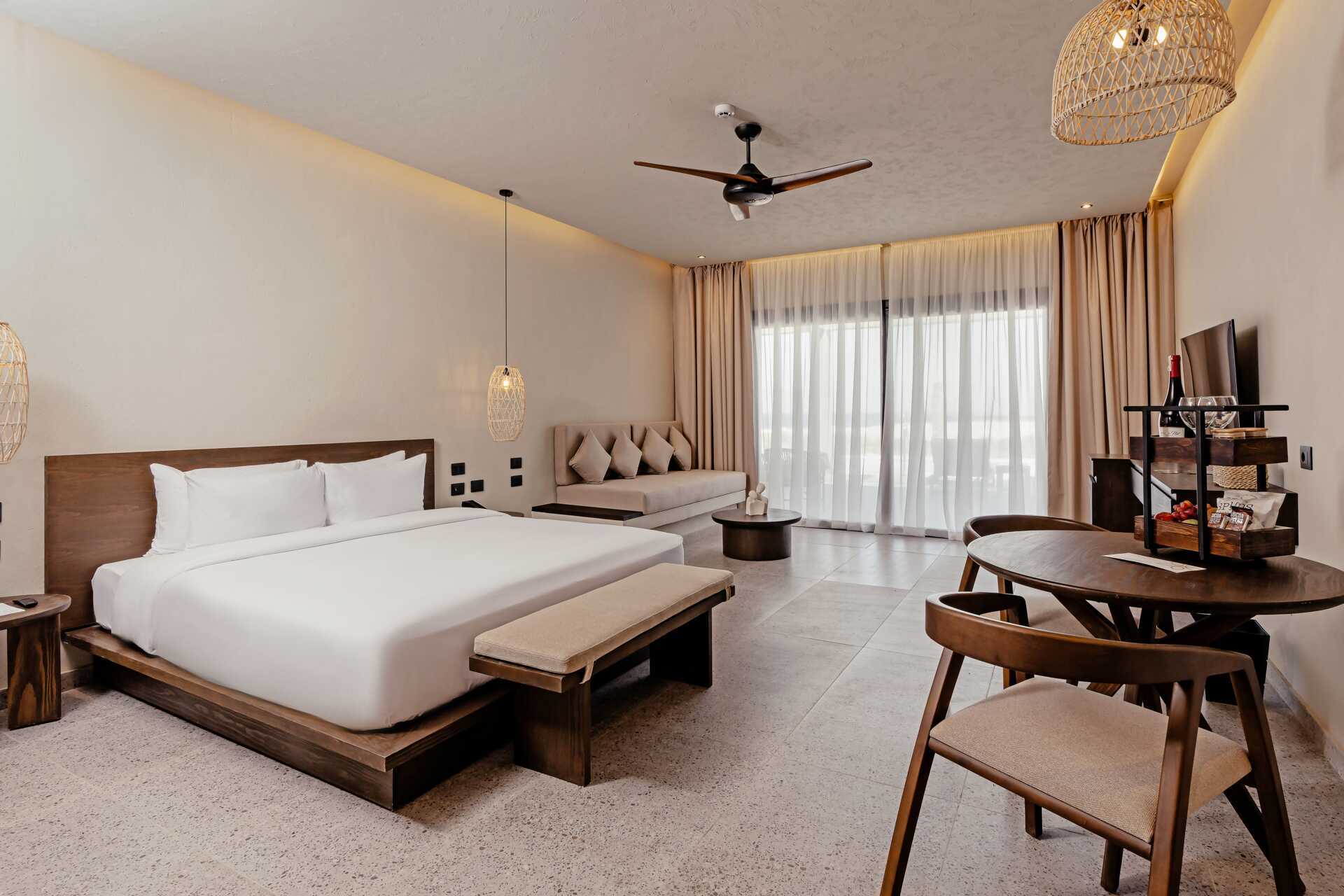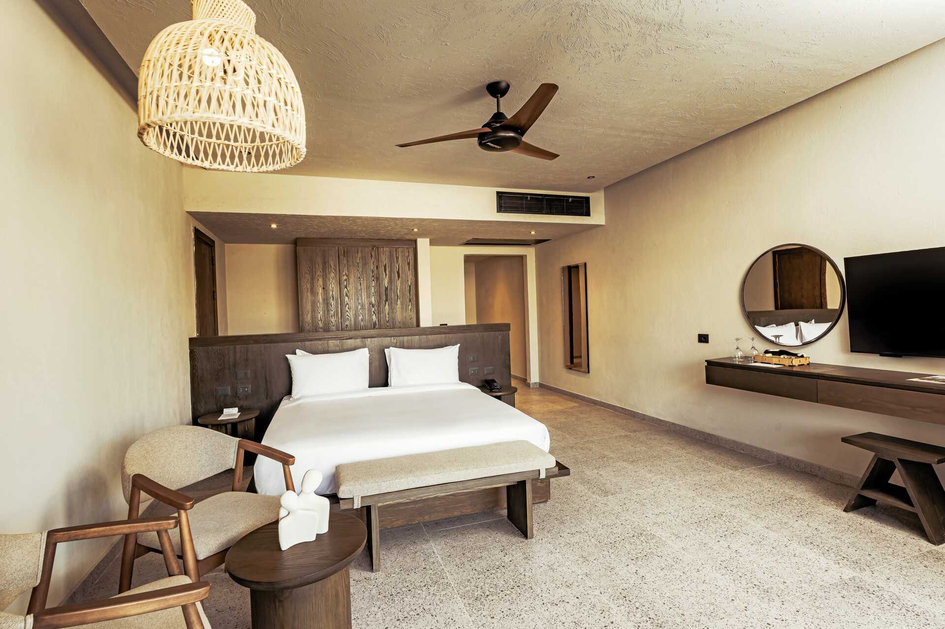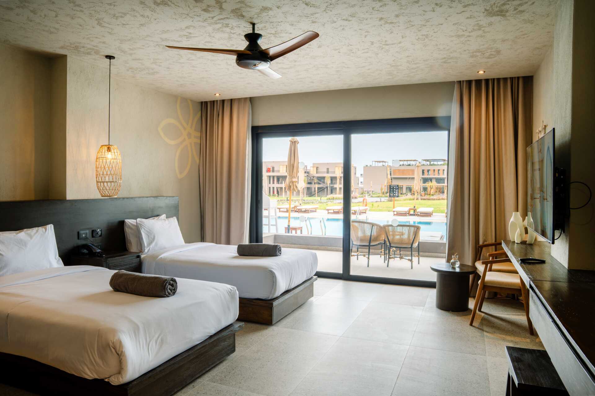 Juniorsvit med markterrass och delad pool, vissa med havsutsikt. En dubbelsäng. Möjlighet till extrabädd i bäddsoffa. Wifi, luftkonditionering och deponering ingår. Minibar mot avgift. Vattenkokare samt kaffe och te. Tv med internationella kanaler. Hårtork. Badrum med dusch och wc. Städning 7 ggr/vecka.