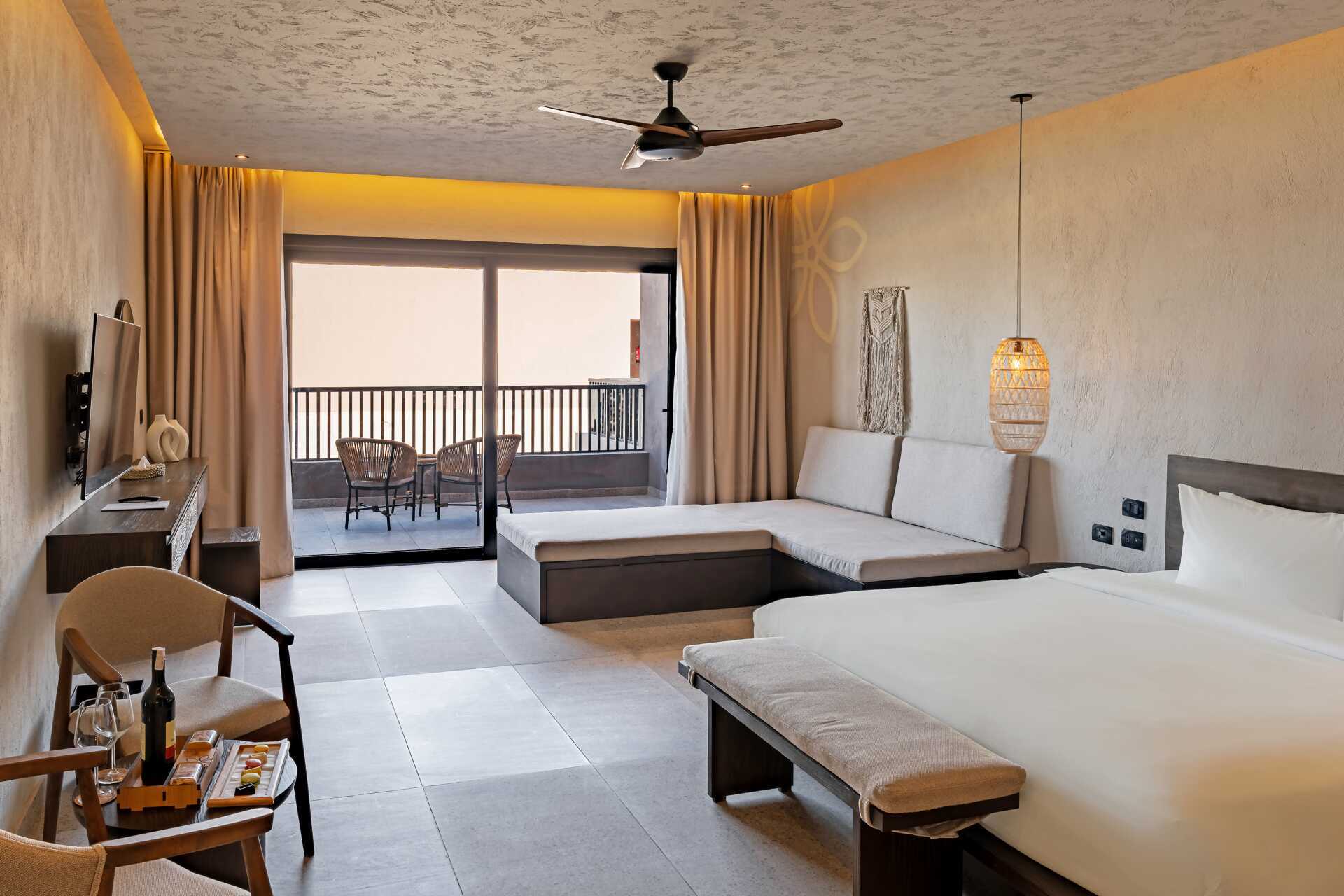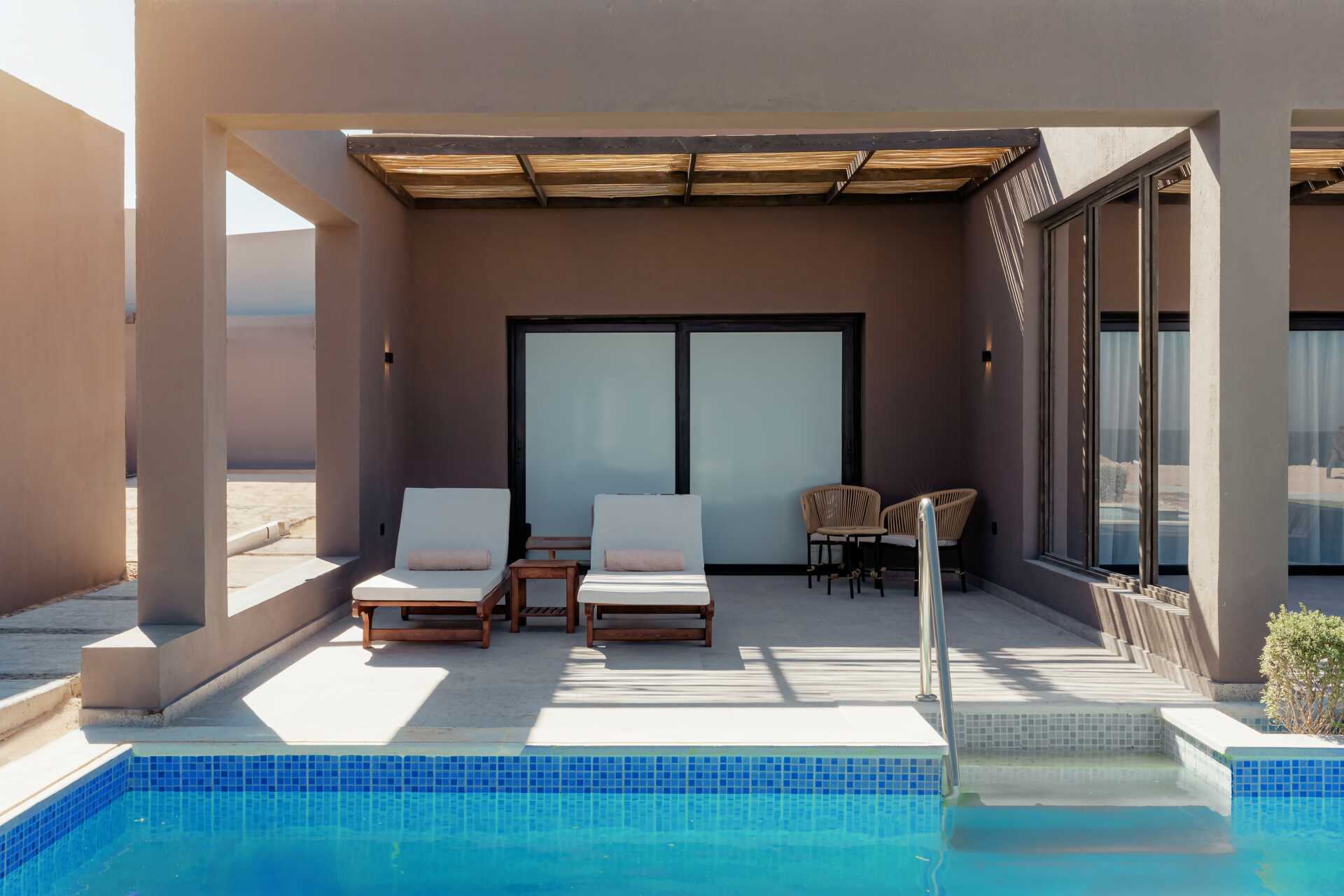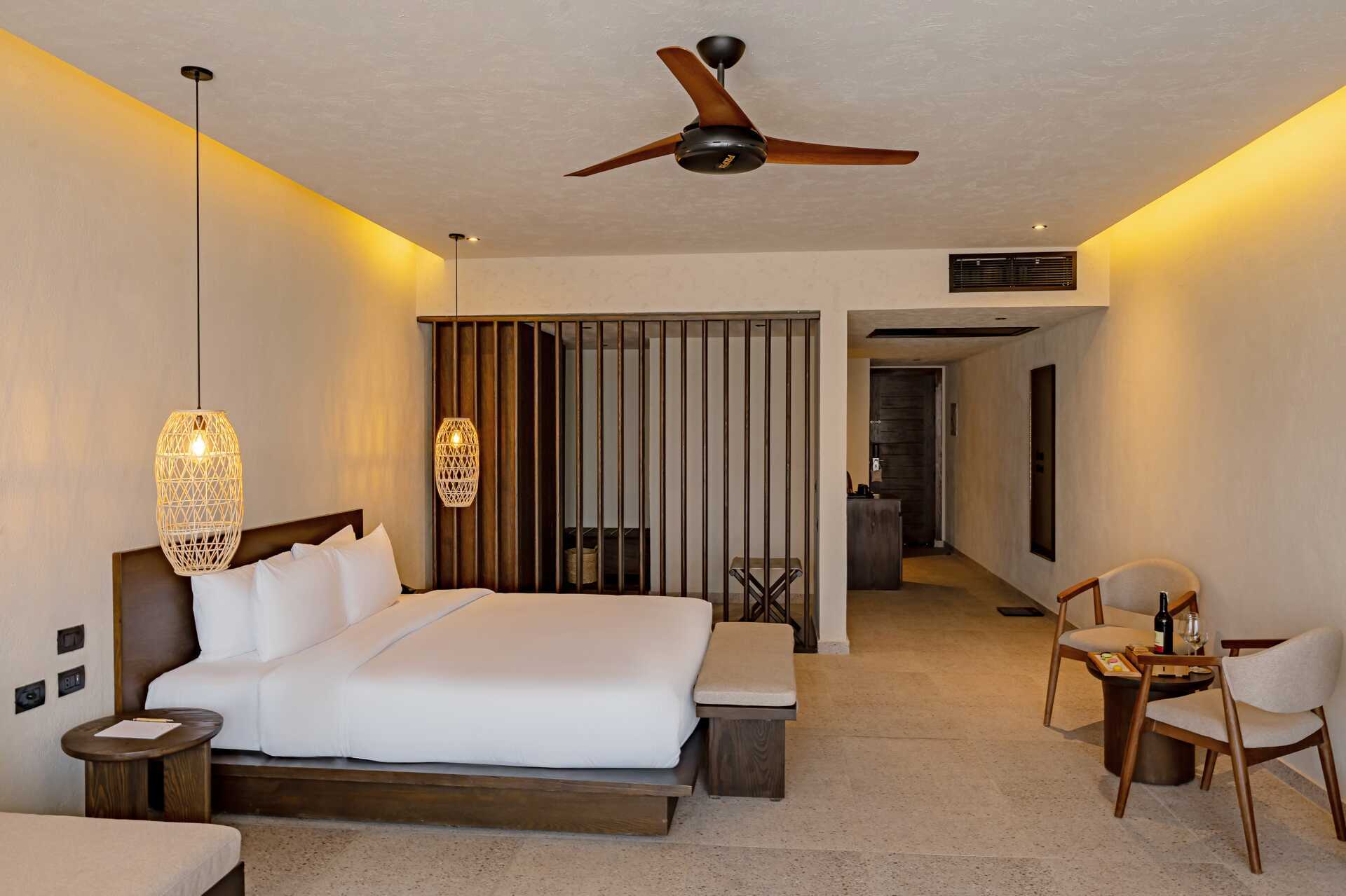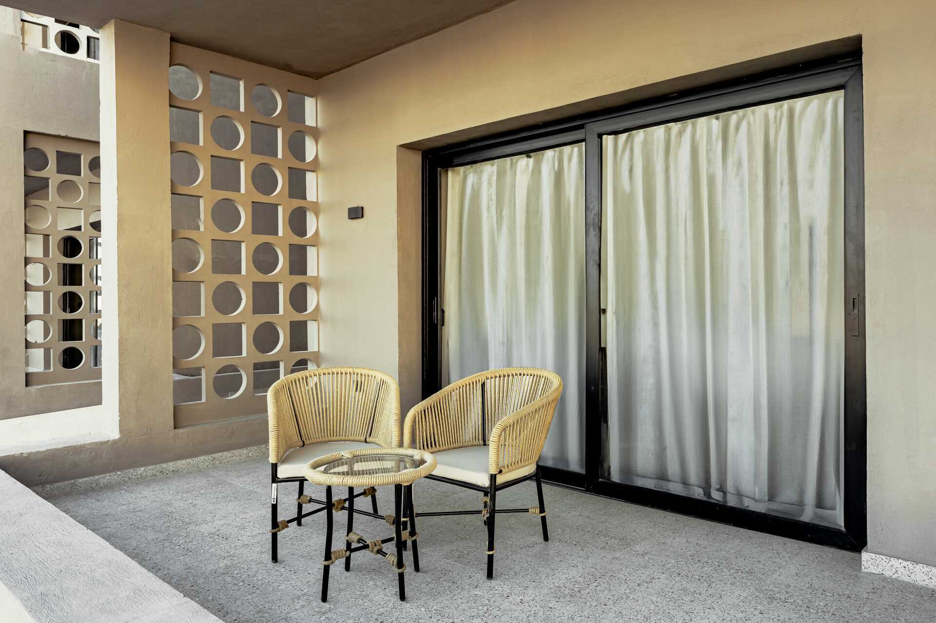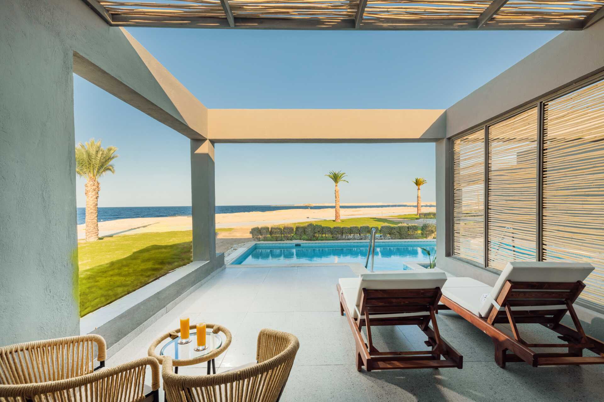 Juniorsvit med markterrass och delad pool, vissa med havsutsikt. En dubbelsäng. Möjlighet till extrabädd i bäddsoffa. Wifi, luftkonditionering och deponering ingår. Minibar mot avgift. Vattenkokare samt kaffe och te. Tv med internationella kanaler. Hårtork. Badrum med dusch och wc. Städning 7 ggr/vecka.