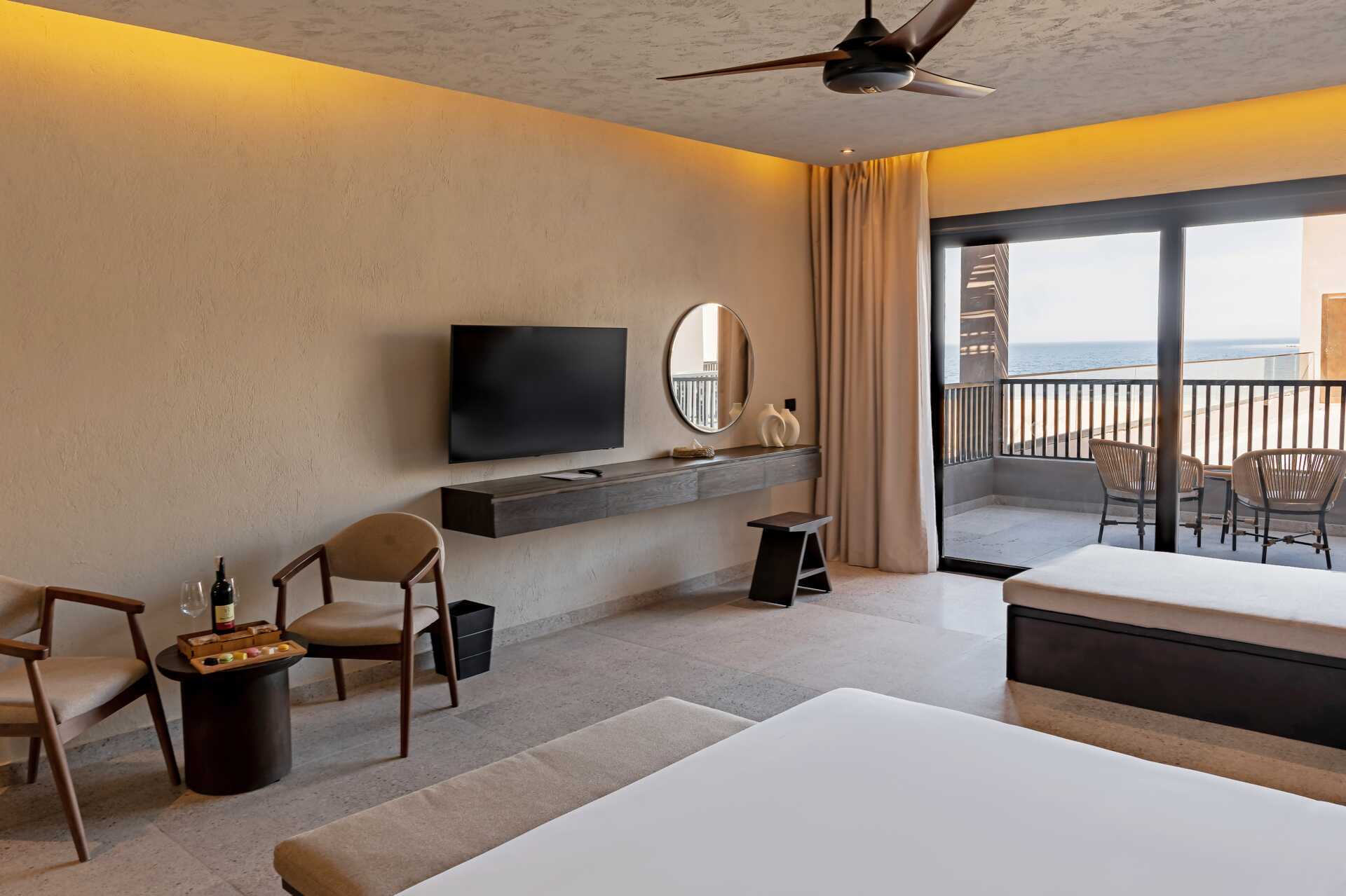 Juniorsvit med balkong eller terrass med havsutsikt. En dubbelsäng eller två enkelsängar. Möjlighet till extrabädd i bäddsoffa. Wifi, luftkonditionering och deponering ingår. Minibar mot avgift. Vattenkokare samt kaffe och te. Tv med internationella kanaler. Hårtork. Badrum med dusch och wc. Städning 7 ggr/vecka.