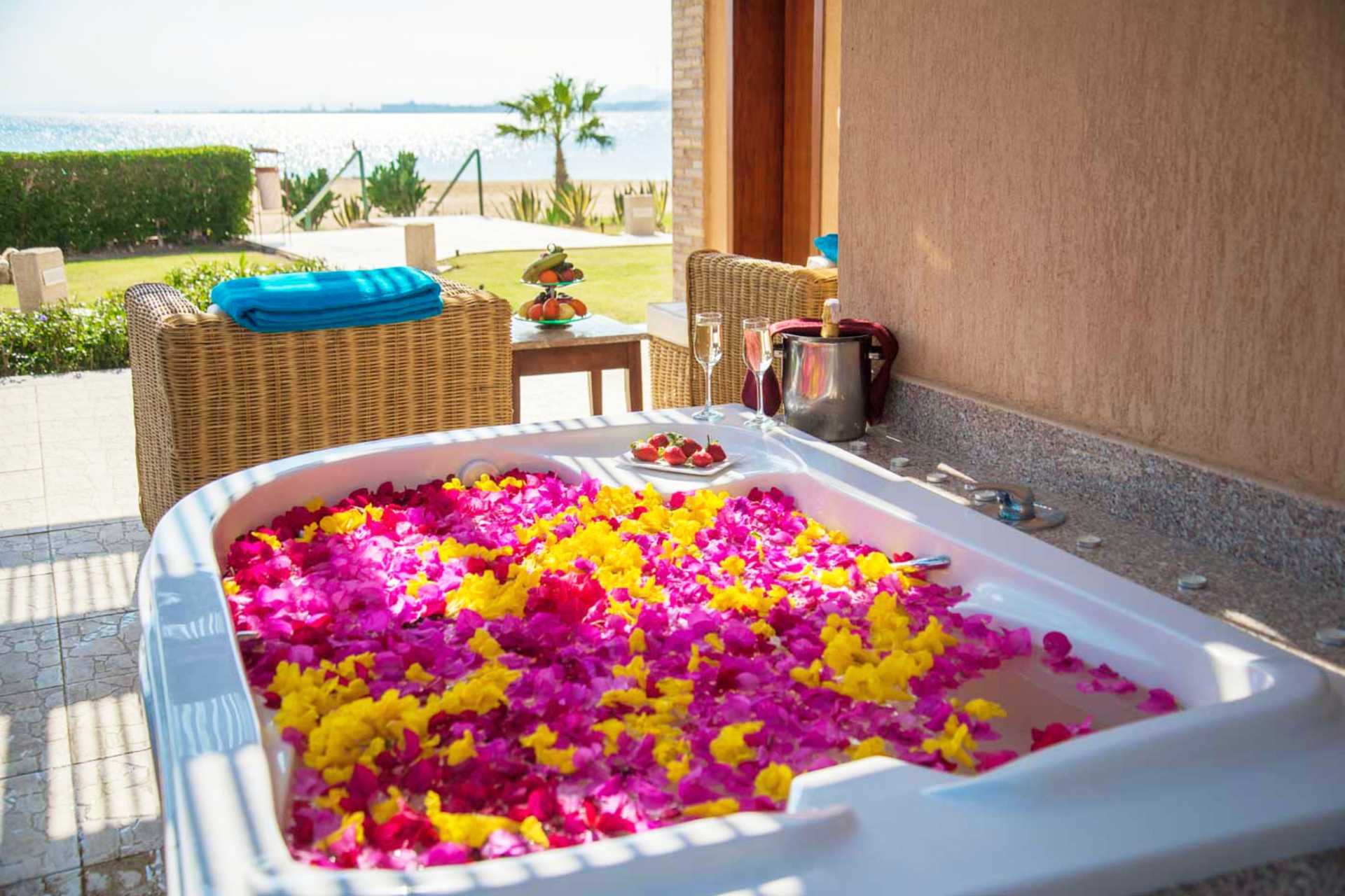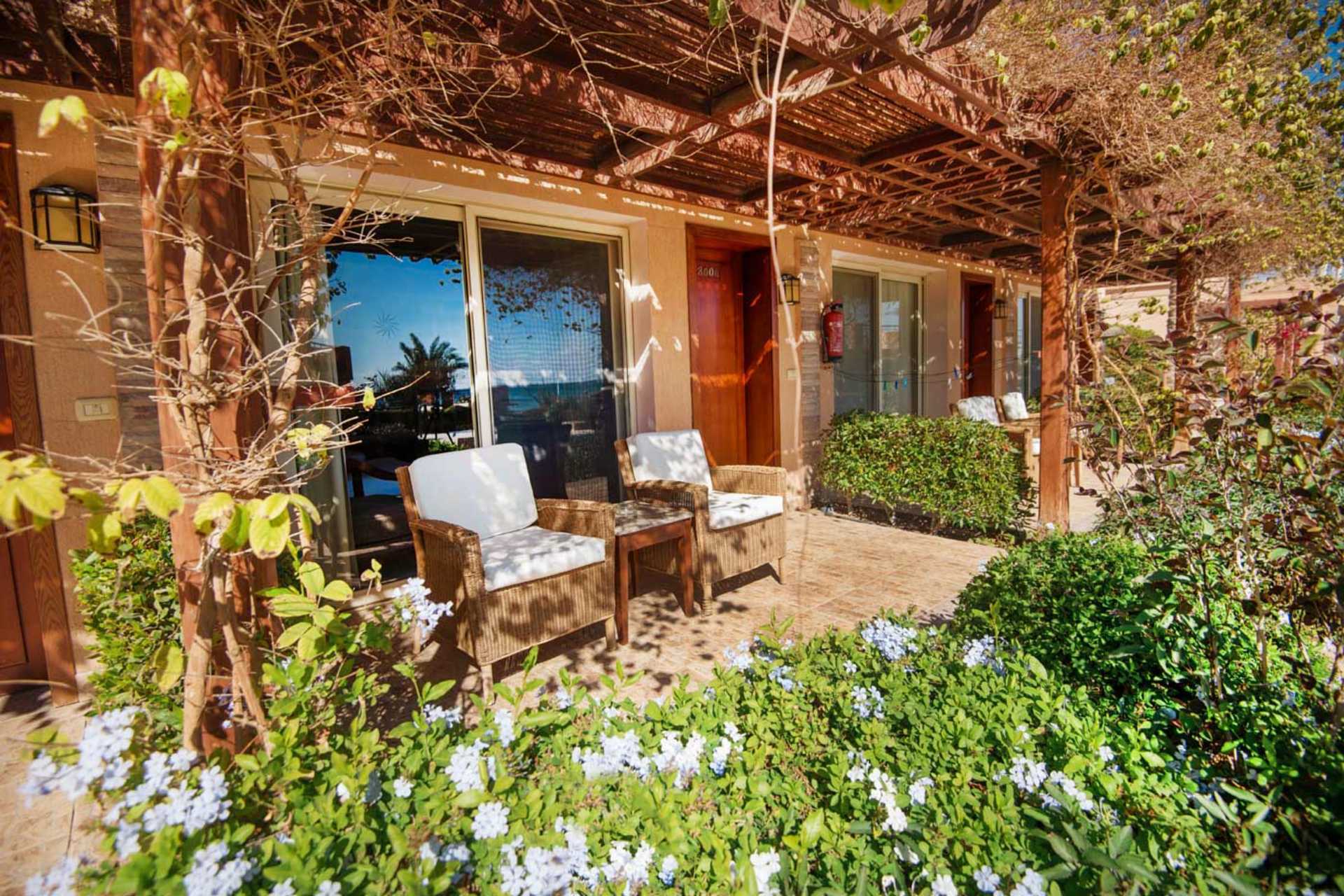 Superiorrum med markterrass och havsutsikt. På terrassen finns sköna fåtöljer, bord och en jacuzzi. En dubbelsäng eller två enkelsängar. Wifi, luftkonditionering och deponering ingår. Minibar ingår med alkoholfria drycker som fylls på dagligen. Vattenkokare samt kaffe och te. Tv med internationella kanaler. Badrockar och tofflor. Hårtork. Badrum med dusch och wc. Städning 7 ggr/vecka.
